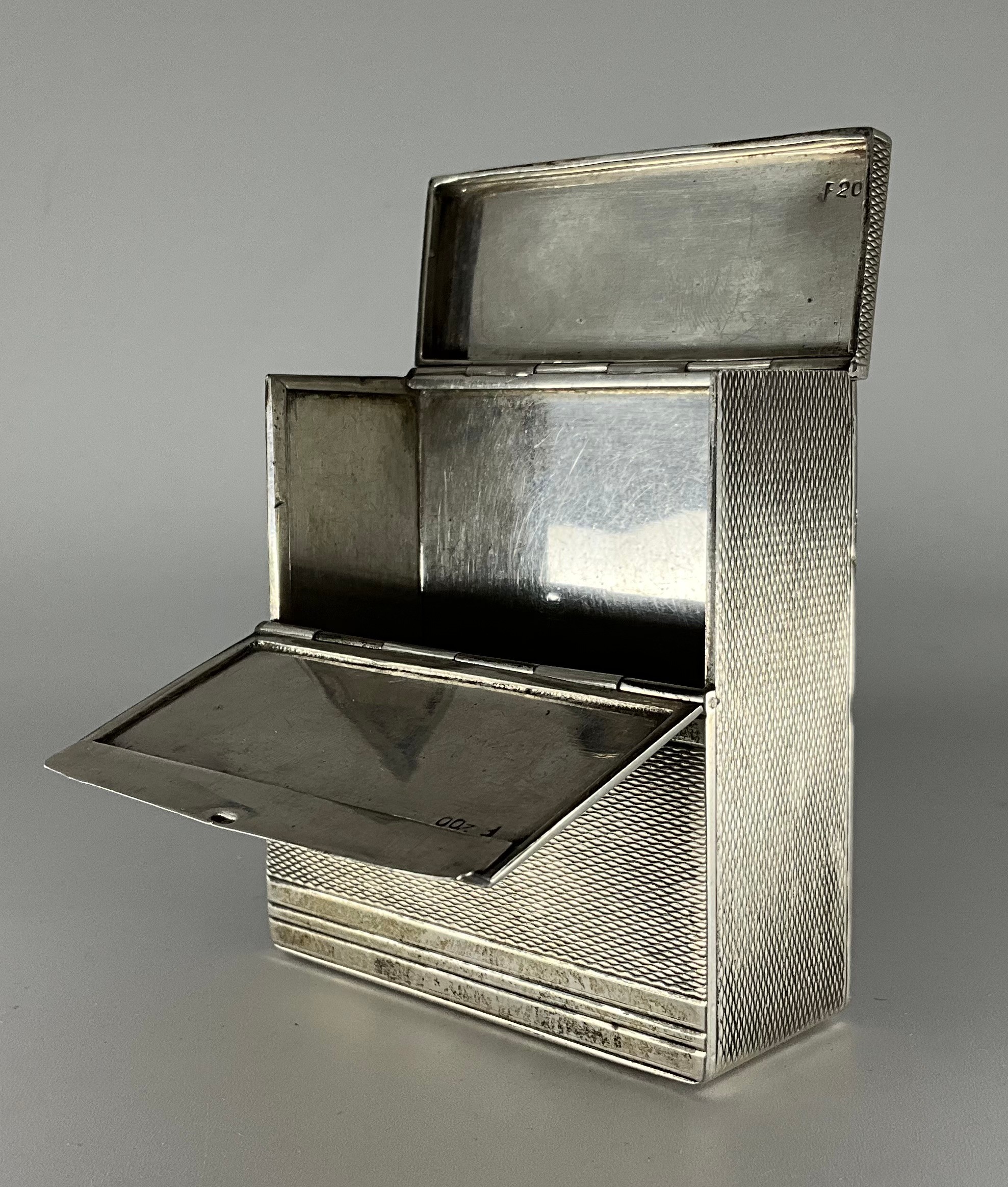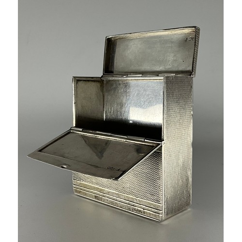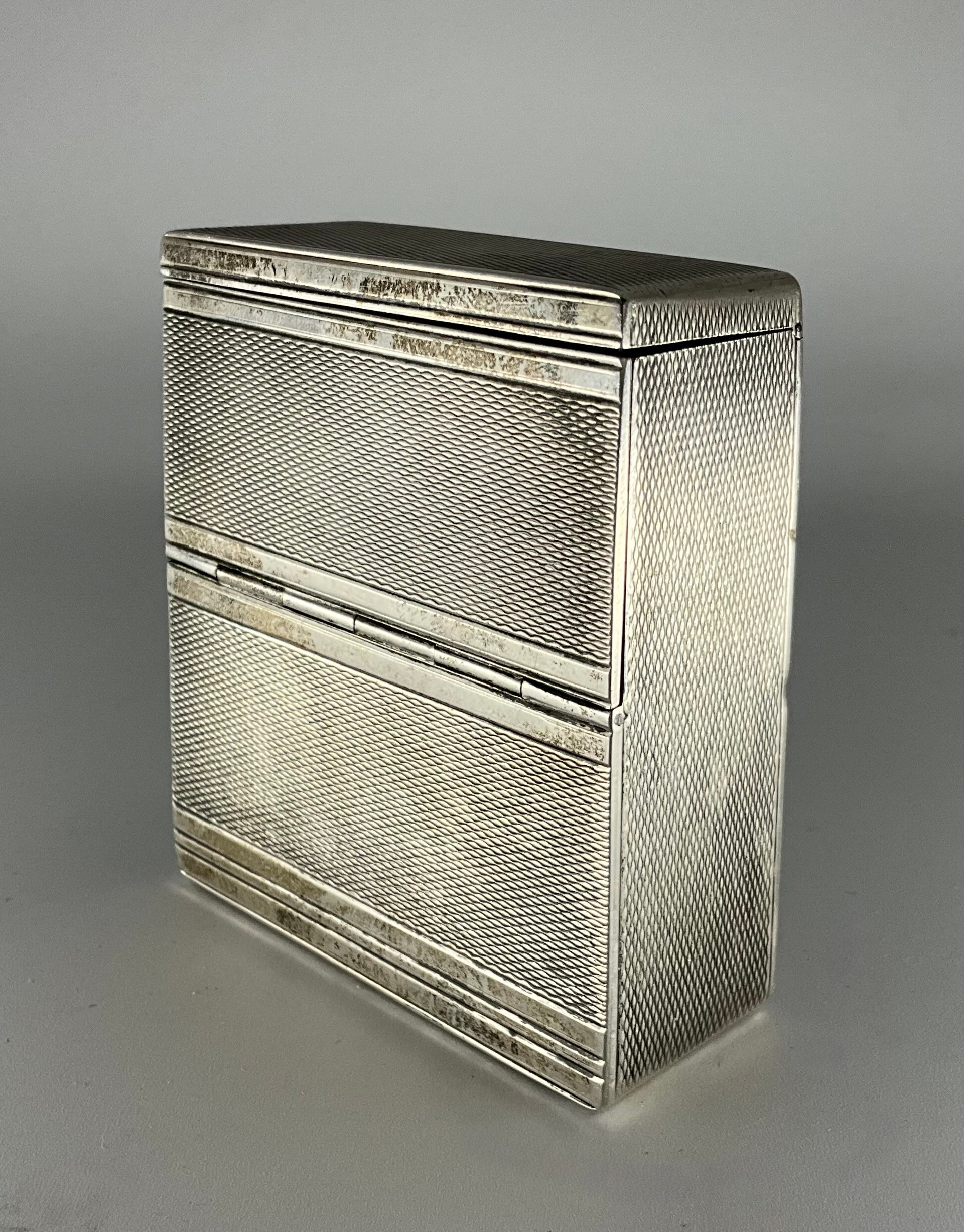 A Continental .835 silver cigarette case, stamped 'PV 835', hinged spring action, engine turned throughout, 8cm x 7cm x3cm, c.1930,