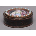 A 19th century Swiss tortoiseshell and enamel circular snuff...