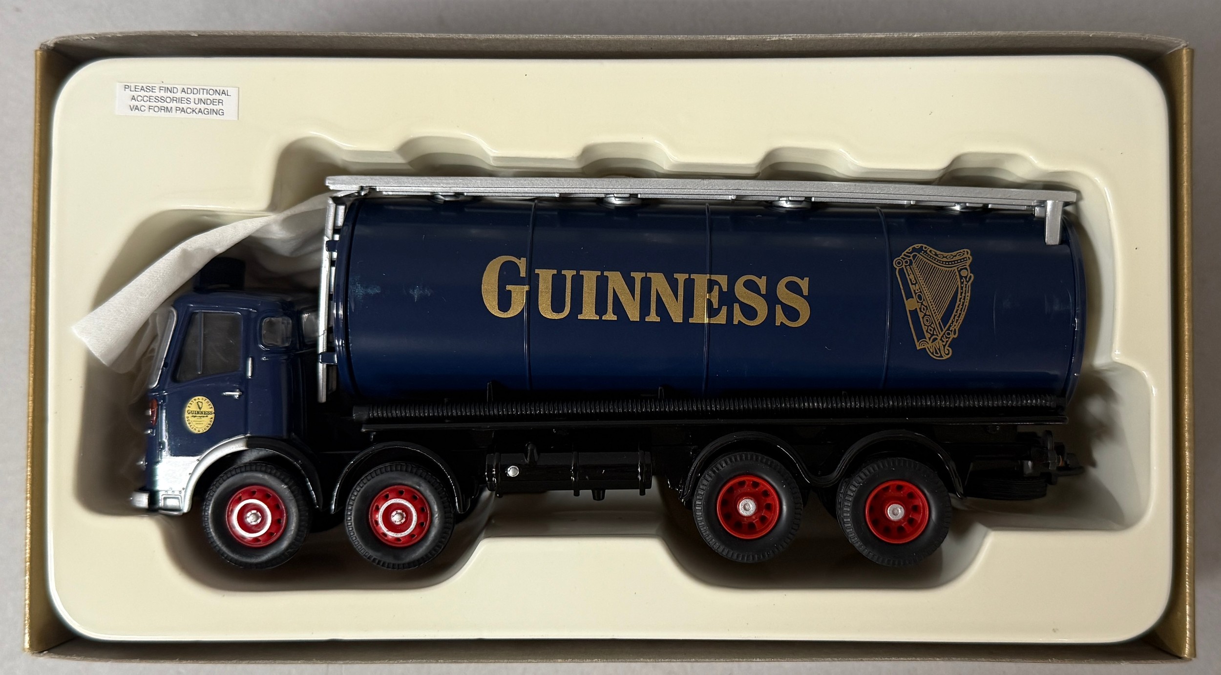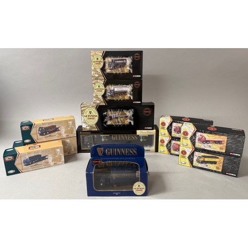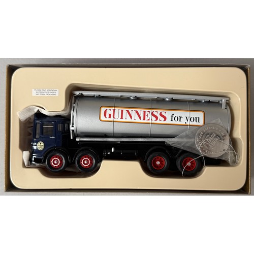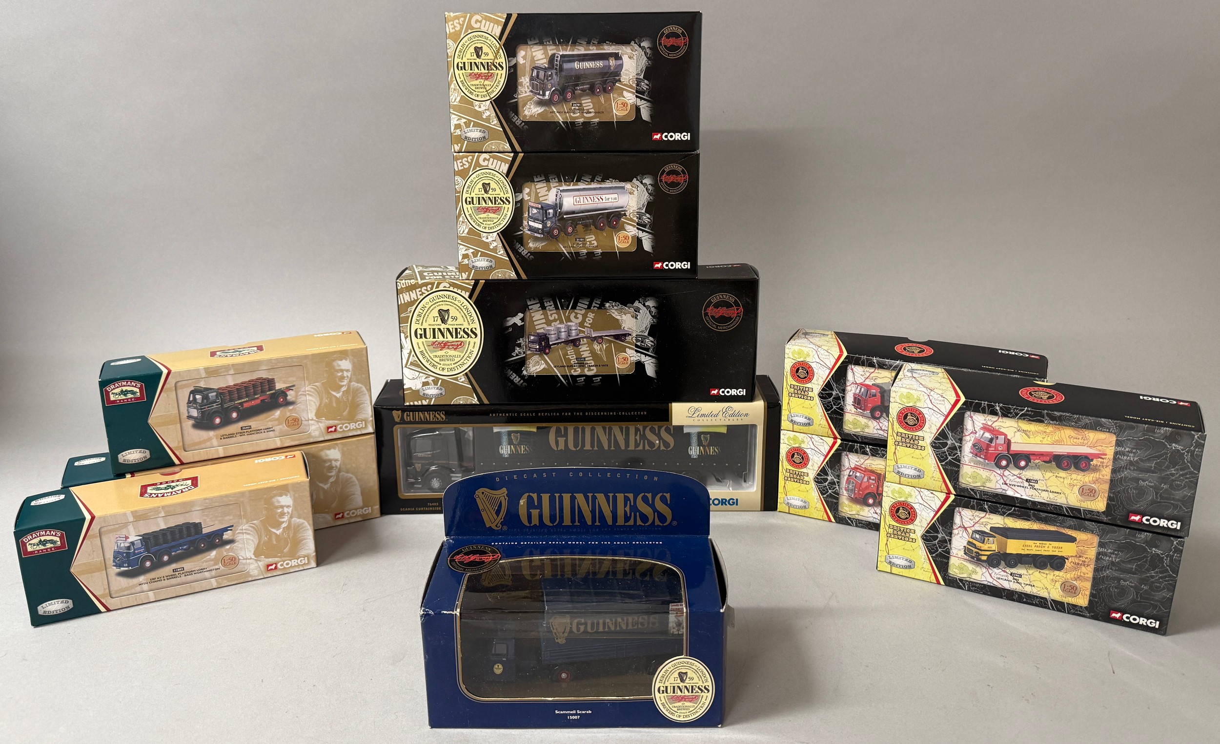 Corgi Toys - Guinness, 76403 Scania curtainside, limited edition 3497/4000, 1/50 scale, boxed; 22302 Leyland Super Comet, Trailer & Vats, limited edition 4232/7000, 1/50 scale, boxed; 26701 AEC MKV Mammoth Major Tanker, limited edition 1880/6000, 1/50 scale, boxed; 21101 AEC Ergomatic Tanker, limited edition 1223/5800, 1/50 scale, boxed; 15007 Scammell Scarab, boxed; British Road Services, 23901 Leyland (LAD) Tipper, limited edition 2797/4000, 1/50 scale, boxed; 11803 ERF KV8 wheel platform lorry, limited edition 923/4000, 1/50 scale, boxed; 26402 AEC MKV 8 wheel platform lorry, limited edition 792,4000, 1/50 scale, boxed; 09803 BRS ERF V 8 wheel platform lorry with pallet load, limited edition 4074/5000, 1/50 scale, boxed; Drayman's Range, 11802 ERF KV 8 wheel platform lorry with chains & barrels, Bass Worthington, limited edition 250/4000, 1/50 scale, boxed; 25401 Leyland steer platform lorry & barrels, WM Hancock & Sons, limited edition 815/4000, 1/50 scale, boxed; 10001 ERF KV Artic trailer & barrels, William McEwan & Company Ltd, limited edition 1979/4000, 1/50 scale, boxed (12)