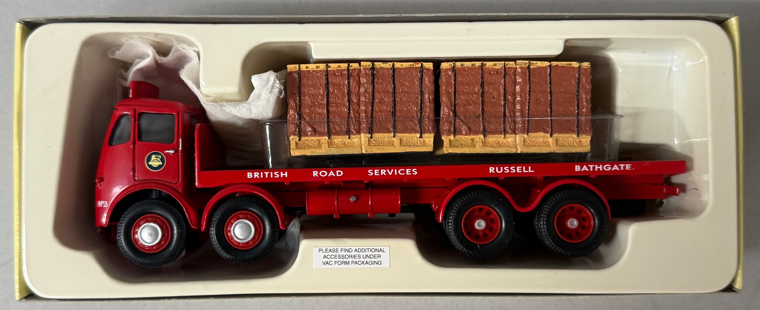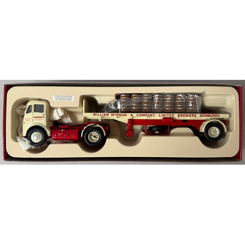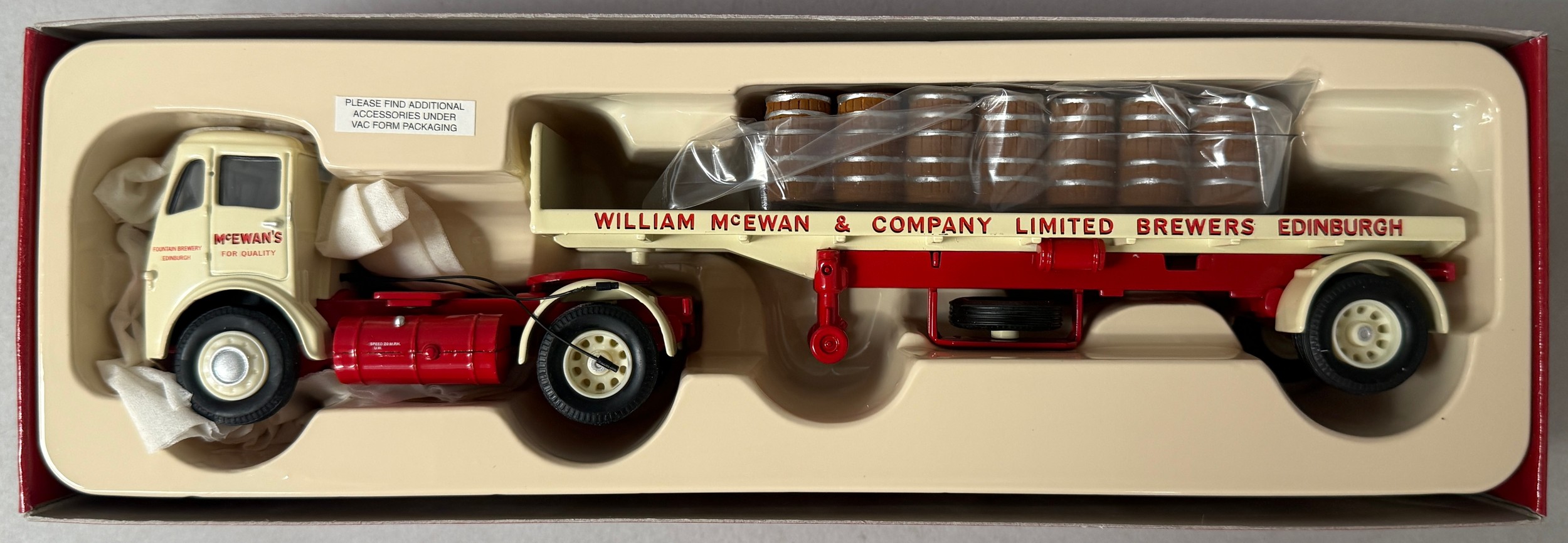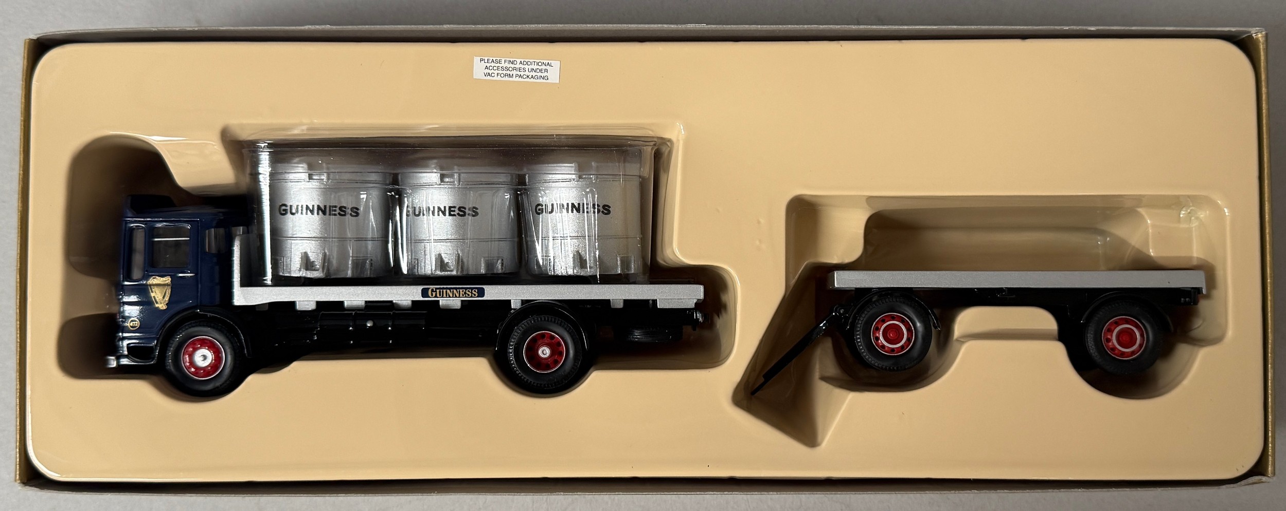 Corgi Toys - Guinness, 76403 Scania curtainside, limited edition 3497/4000, 1/50 scale, boxed; 22302 Leyland Super Comet, Trailer & Vats, limited edition 4232/7000, 1/50 scale, boxed; 26701 AEC MKV Mammoth Major Tanker, limited edition 1880/6000, 1/50 scale, boxed; 21101 AEC Ergomatic Tanker, limited edition 1223/5800, 1/50 scale, boxed; 15007 Scammell Scarab, boxed; British Road Services, 23901 Leyland (LAD) Tipper, limited edition 2797/4000, 1/50 scale, boxed; 11803 ERF KV8 wheel platform lorry, limited edition 923/4000, 1/50 scale, boxed; 26402 AEC MKV 8 wheel platform lorry, limited edition 792,4000, 1/50 scale, boxed; 09803 BRS ERF V 8 wheel platform lorry with pallet load, limited edition 4074/5000, 1/50 scale, boxed; Drayman's Range, 11802 ERF KV 8 wheel platform lorry with chains & barrels, Bass Worthington, limited edition 250/4000, 1/50 scale, boxed; 25401 Leyland steer platform lorry & barrels, WM Hancock & Sons, limited edition 815/4000, 1/50 scale, boxed; 10001 ERF KV Artic trailer & barrels, William McEwan & Company Ltd, limited edition 1979/4000, 1/50 scale, boxed (12)