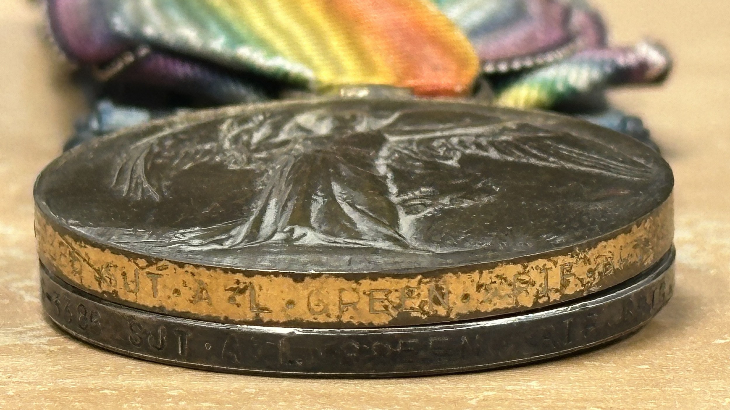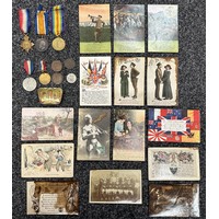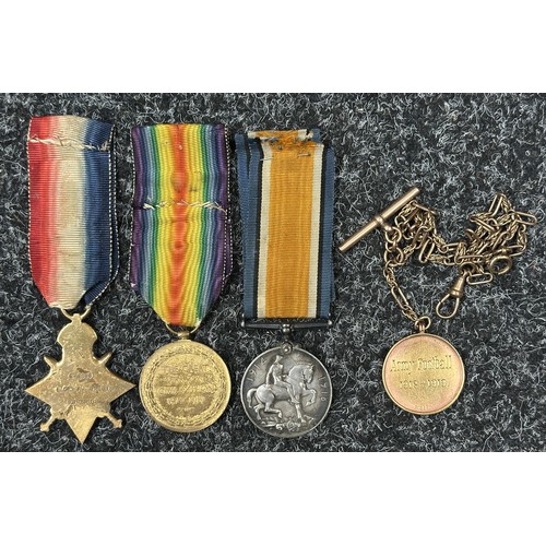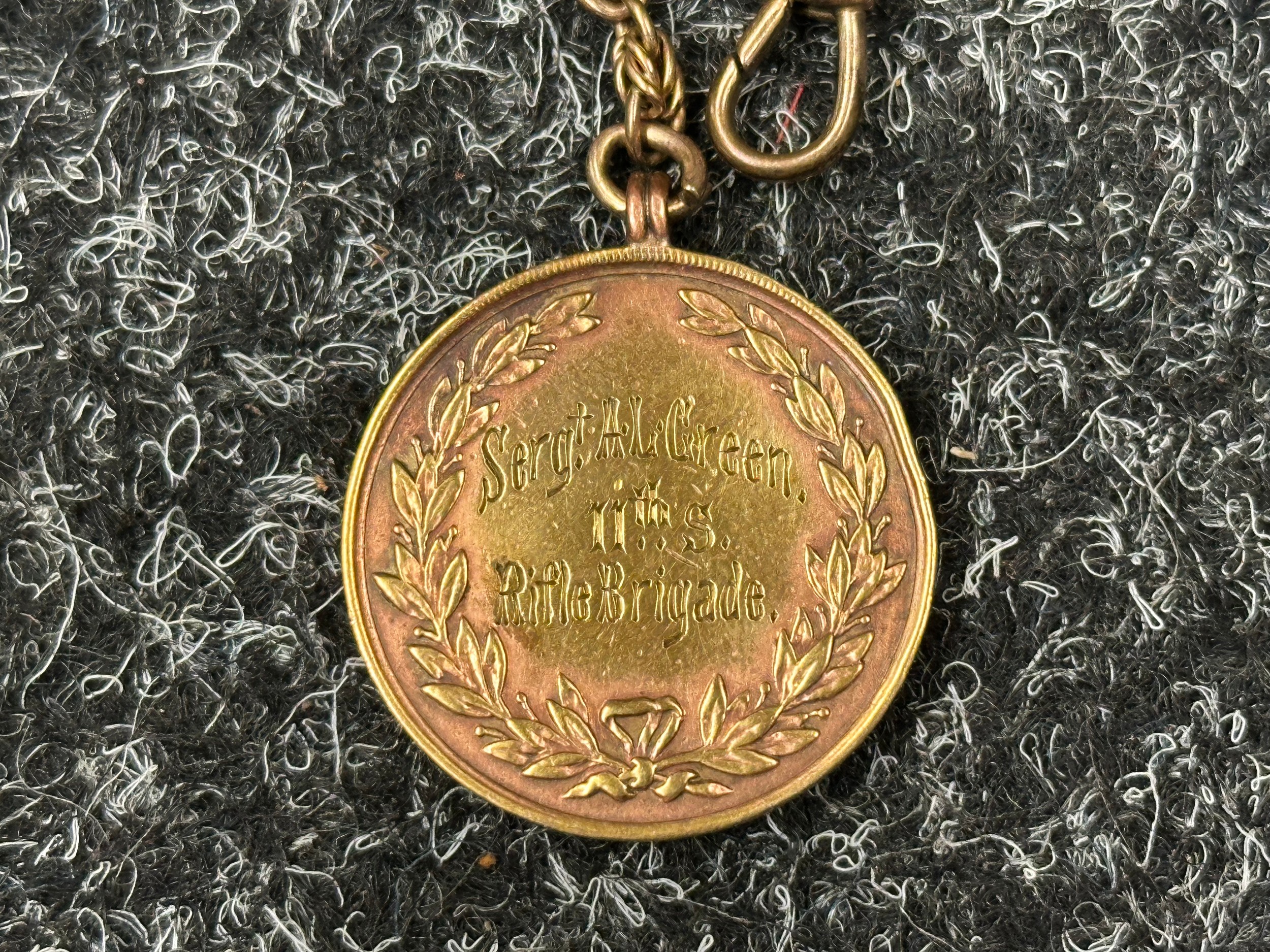 WW1 British Medal group to S-3389 Sjt AL Green, Rifle Brigade compring of 1914-15 Star, War Medal and Victory Medal all complete with original ribbons and a Regimental Army Football 1918-1919 medalion engraved to Sergt AL Green, 11th S Rifle Brigade on a chain.