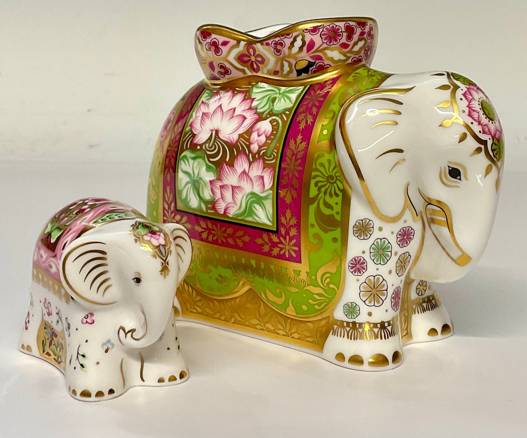 A pair of Royal Crown Derby paperweights, Rani Mother Elepha...