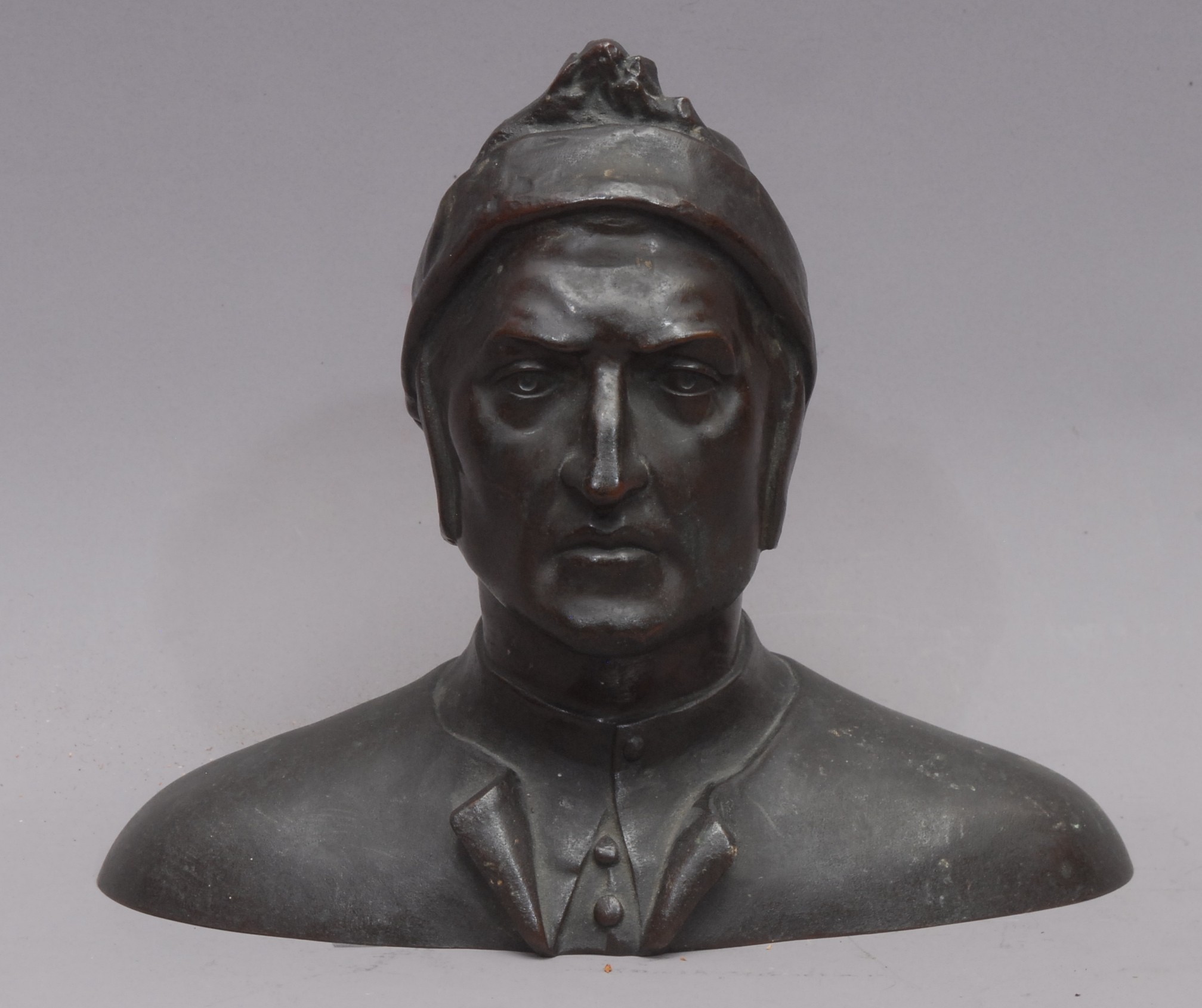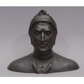 A Renaissance Revival dark patinated bronze cabinet bust or desk weight, Dante Alighieri (1265-1321), 18cm high overall, c. 1890