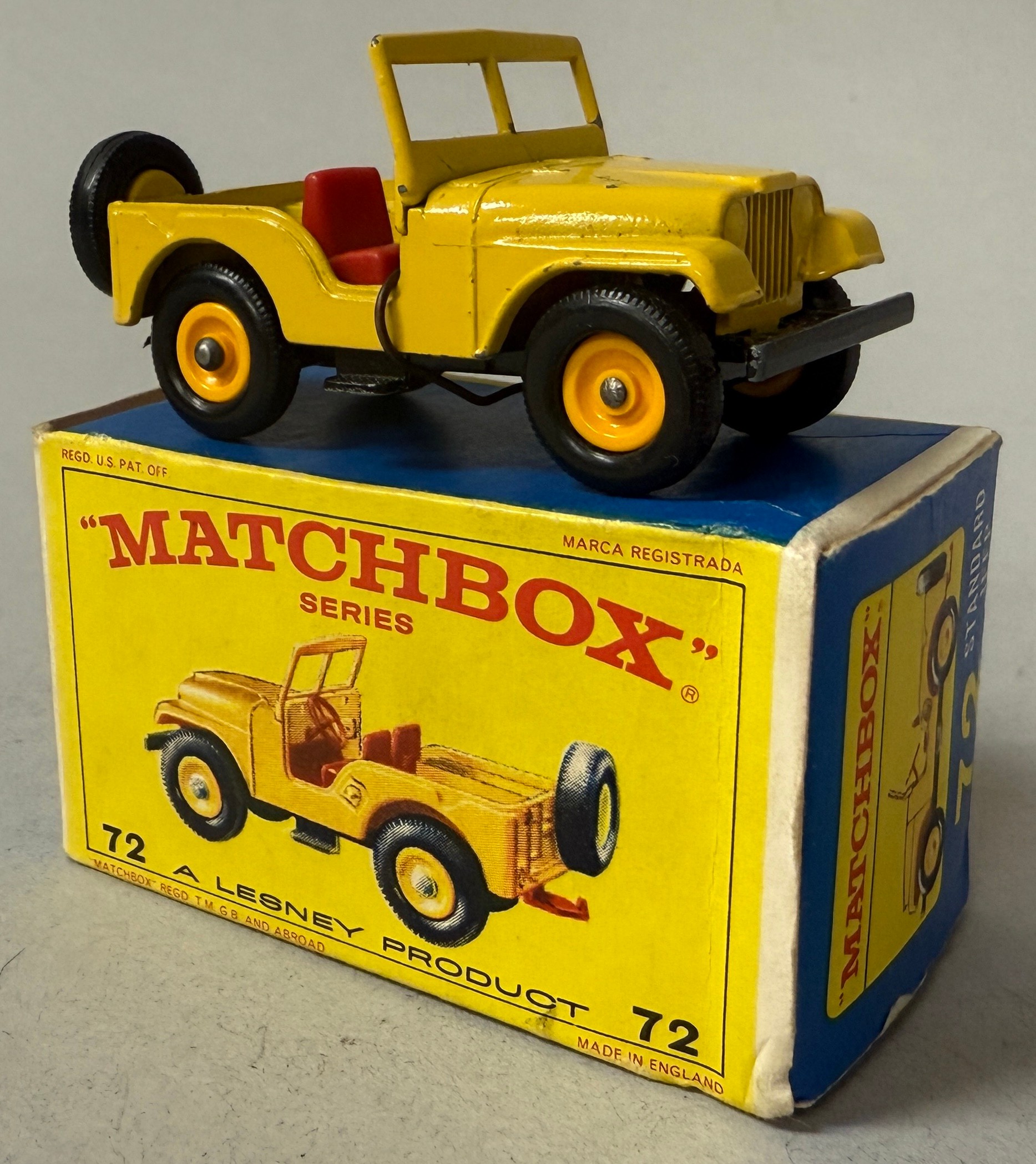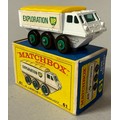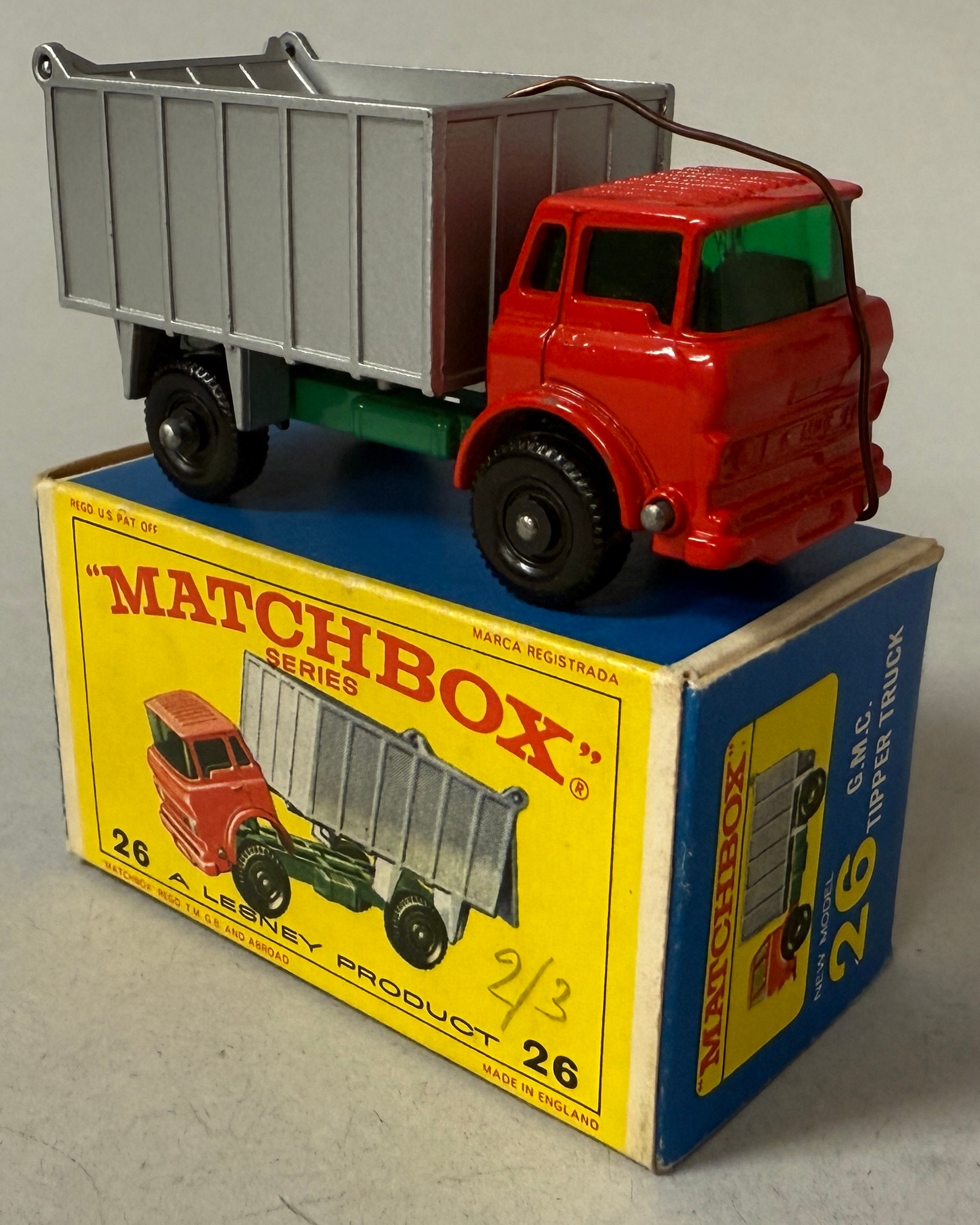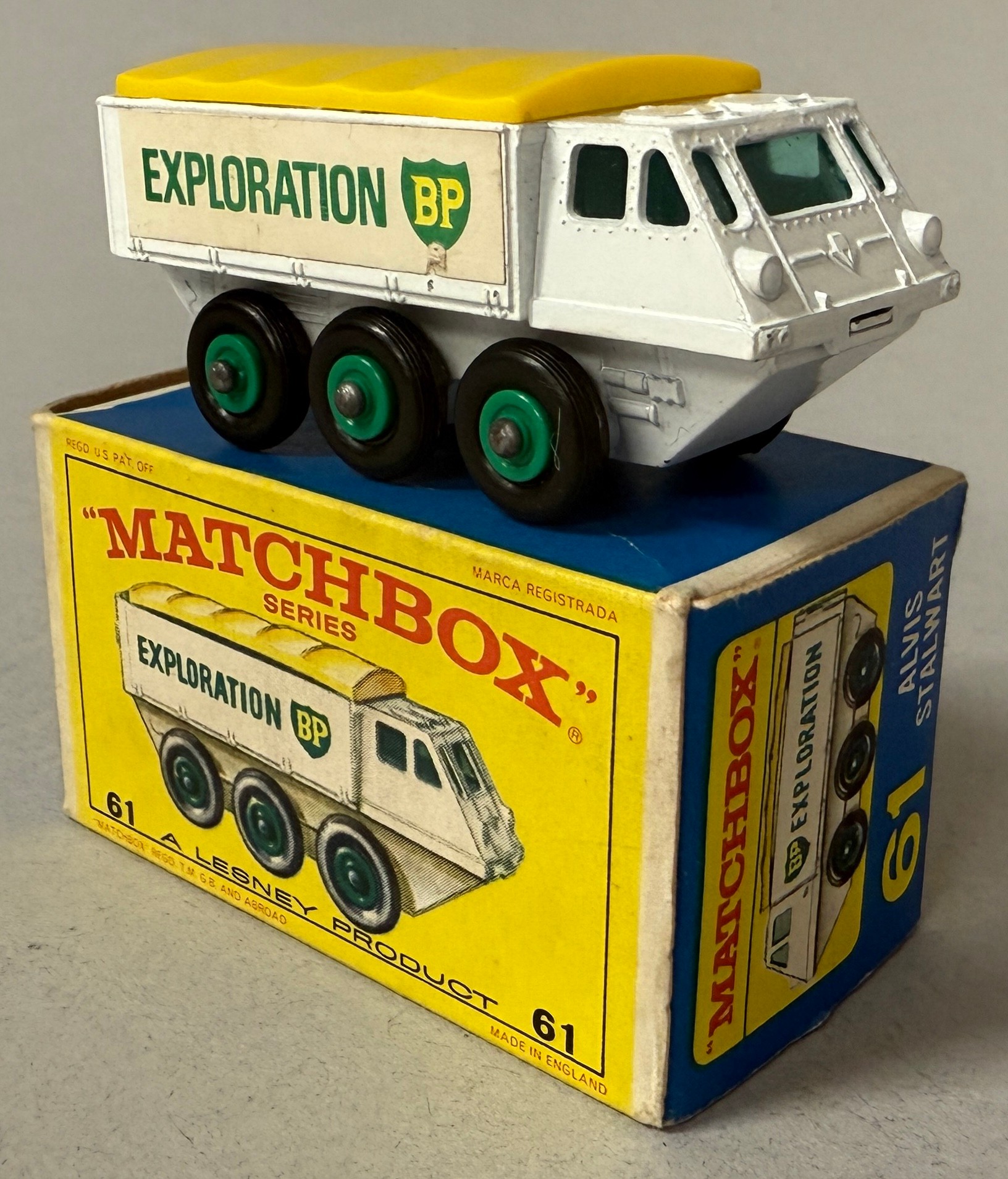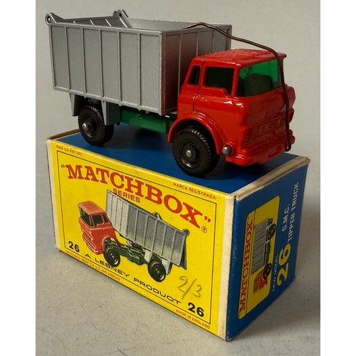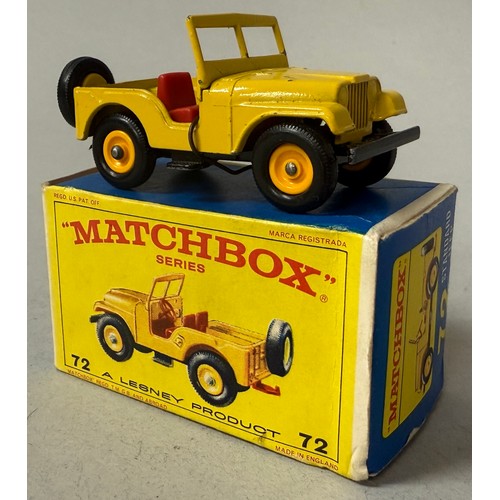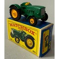 Matchbox - Series, 28 Mack Dump Truck, orange body, boxed; 26 G.M.C. Tipper Truck, red, green and silver body, boxed; 49 Unimog, blue and red body, boxed; 50 John Deere-Lanz Tractor, green body, boxed; 61 Alvis Stalwart, yellow over white body, 'BP Exploration' decal to sides, boxed; 72 Standard Jeep, yellow body, red interior, boxed, all blue and yellow cardboard boxes (6)