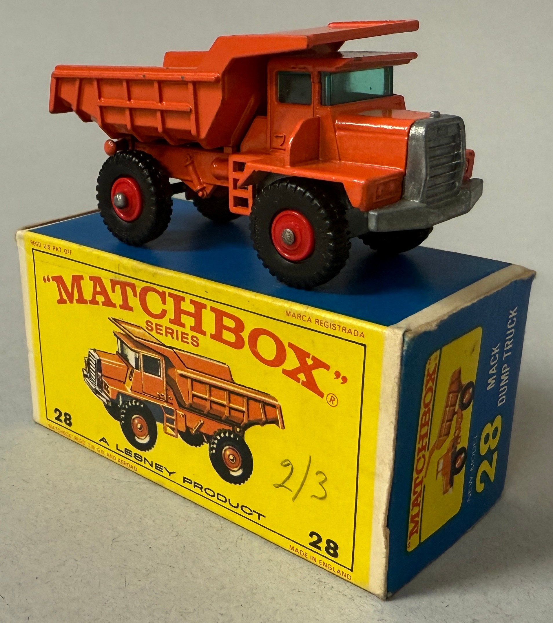 Matchbox - Series, 28 Mack Dump Truck, orange body, boxed; 2...
