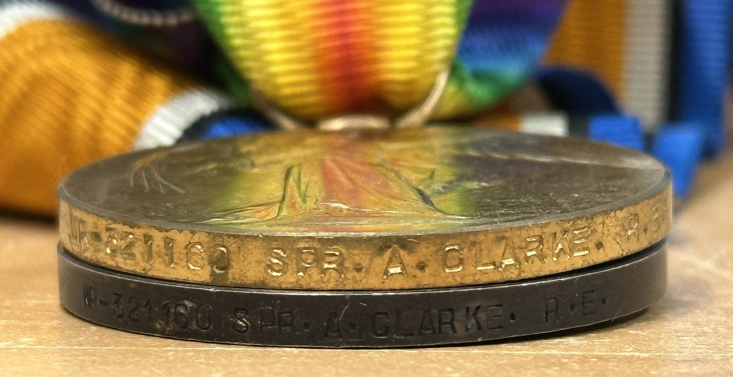 WW1 British War Medal and Victory Medal to WR-321160 Spr. A Clarke, Royal Engineers. Complete with original ribbons.
