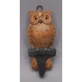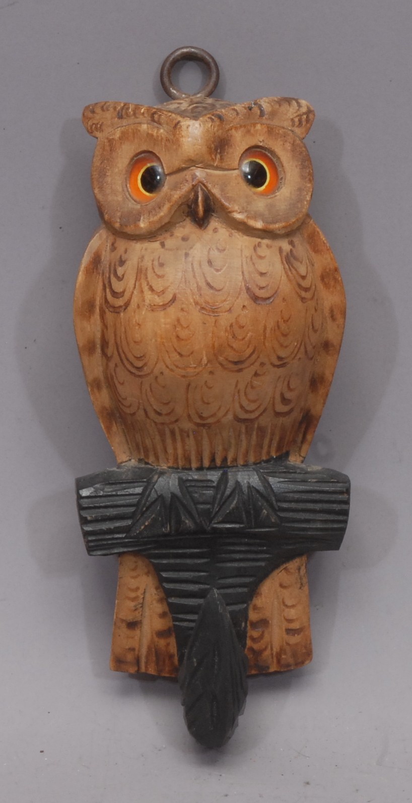 A Black Forest novelty coat hook, carved as an owl, 20cm lon...