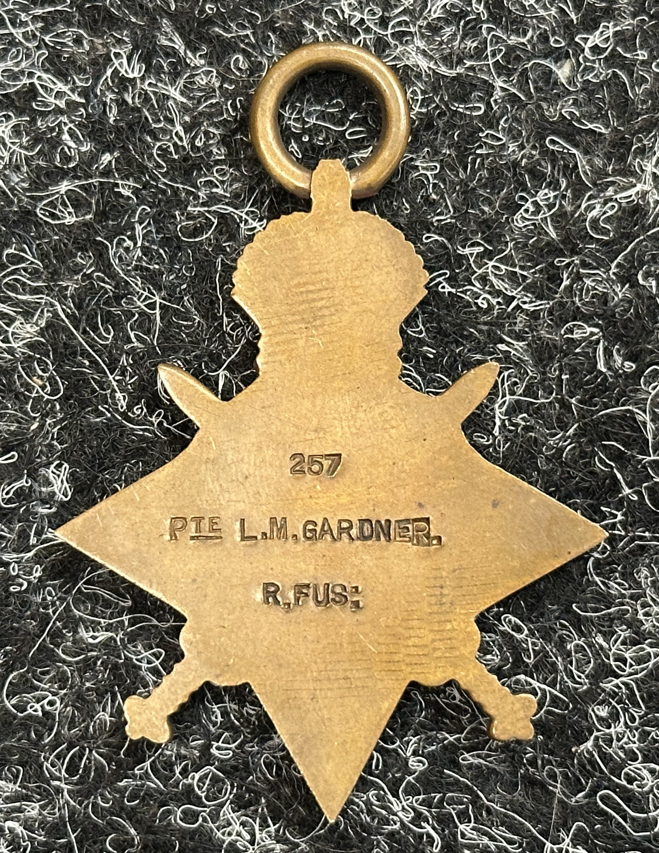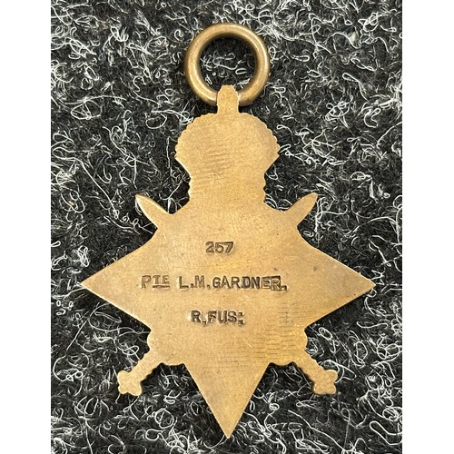 WW1 British Casualty 1914-15 Star to 257 Pte LM Gardner, Royal Fusiliers. No ribbon. Served with 22nd Battalion and Killed in Action on 24/5/1916.
