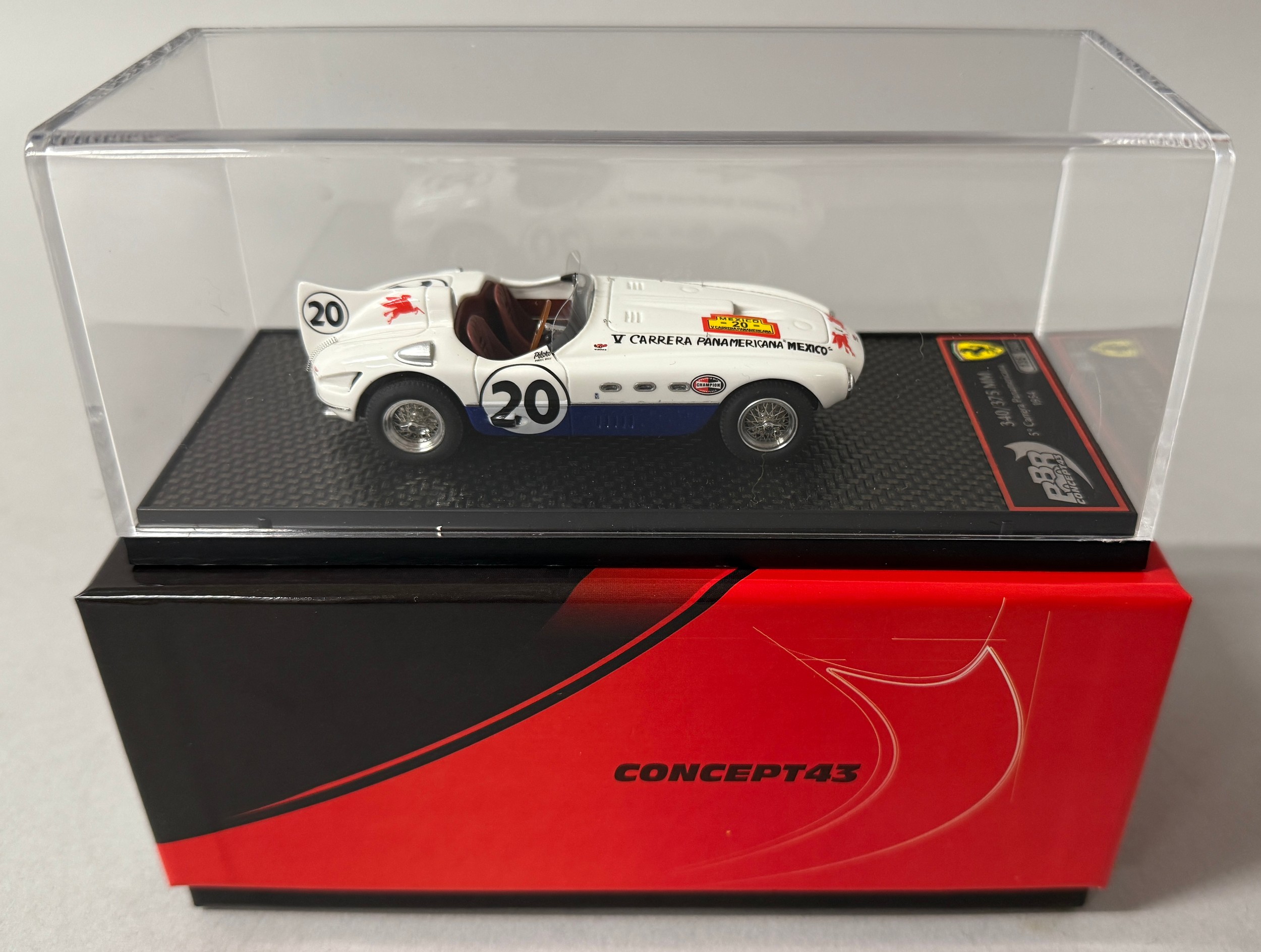 BBR Models - Concept 43, 340/375 MM 5° Carrera Panamericana 1954, Hill-Ginther car No. 20, limited edition 135/500, 1/43 scale, limited edition tri-fold card, perspex display case and cardboard box