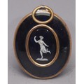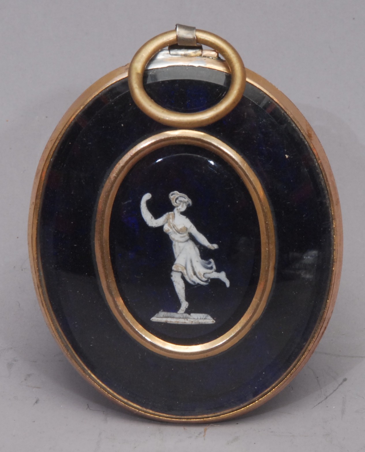 A 19th century enamel and gilt metal pendant or cabinet miniature, decorated en grisaille with a classical figure in the Grand Tour taste, 8.5cm over loop