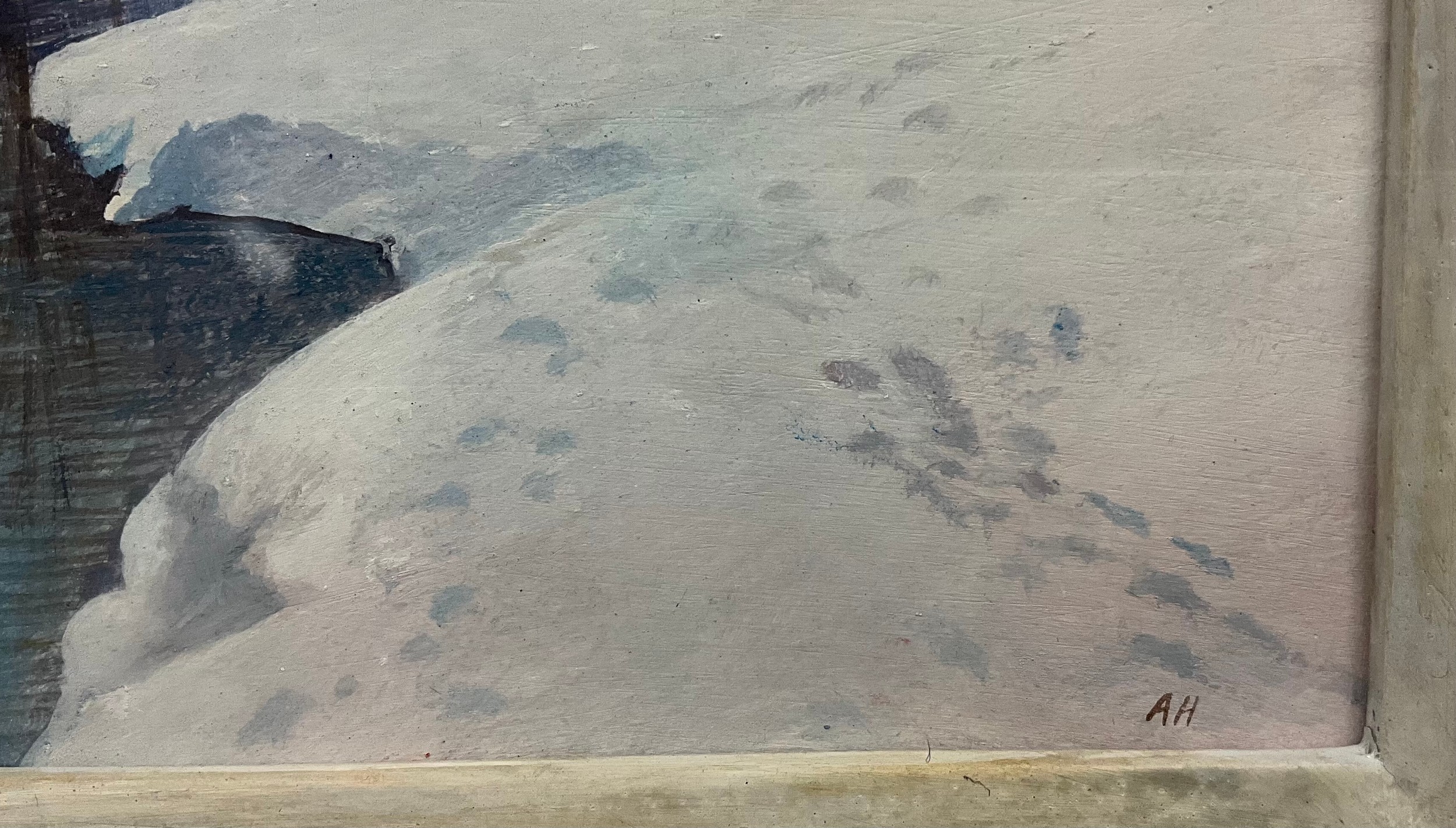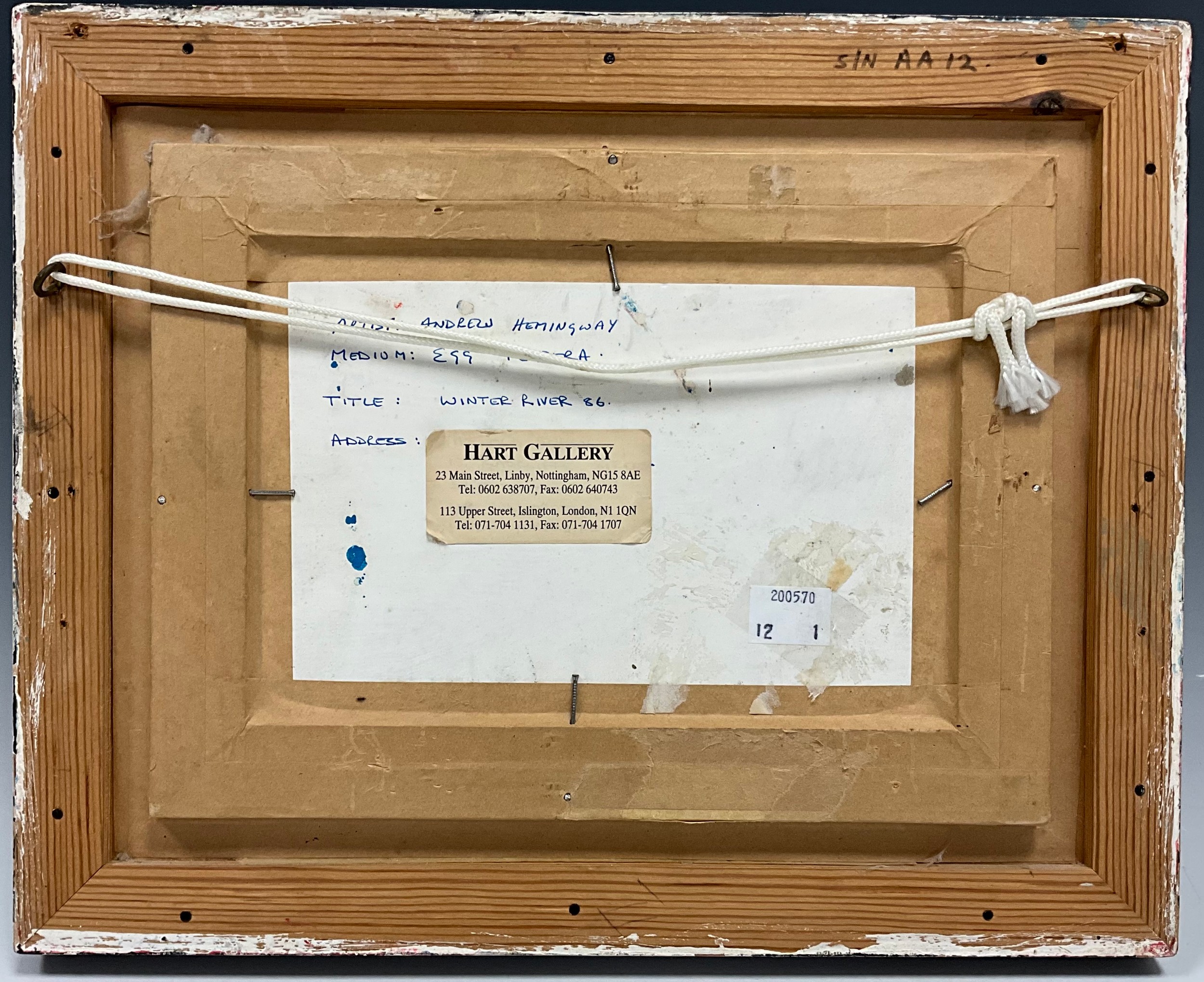 Andrew Hemingway (bn. 1955) Winter River, signed with monogram, signed, titled, and dated ‘86, to verso, egg tempera,