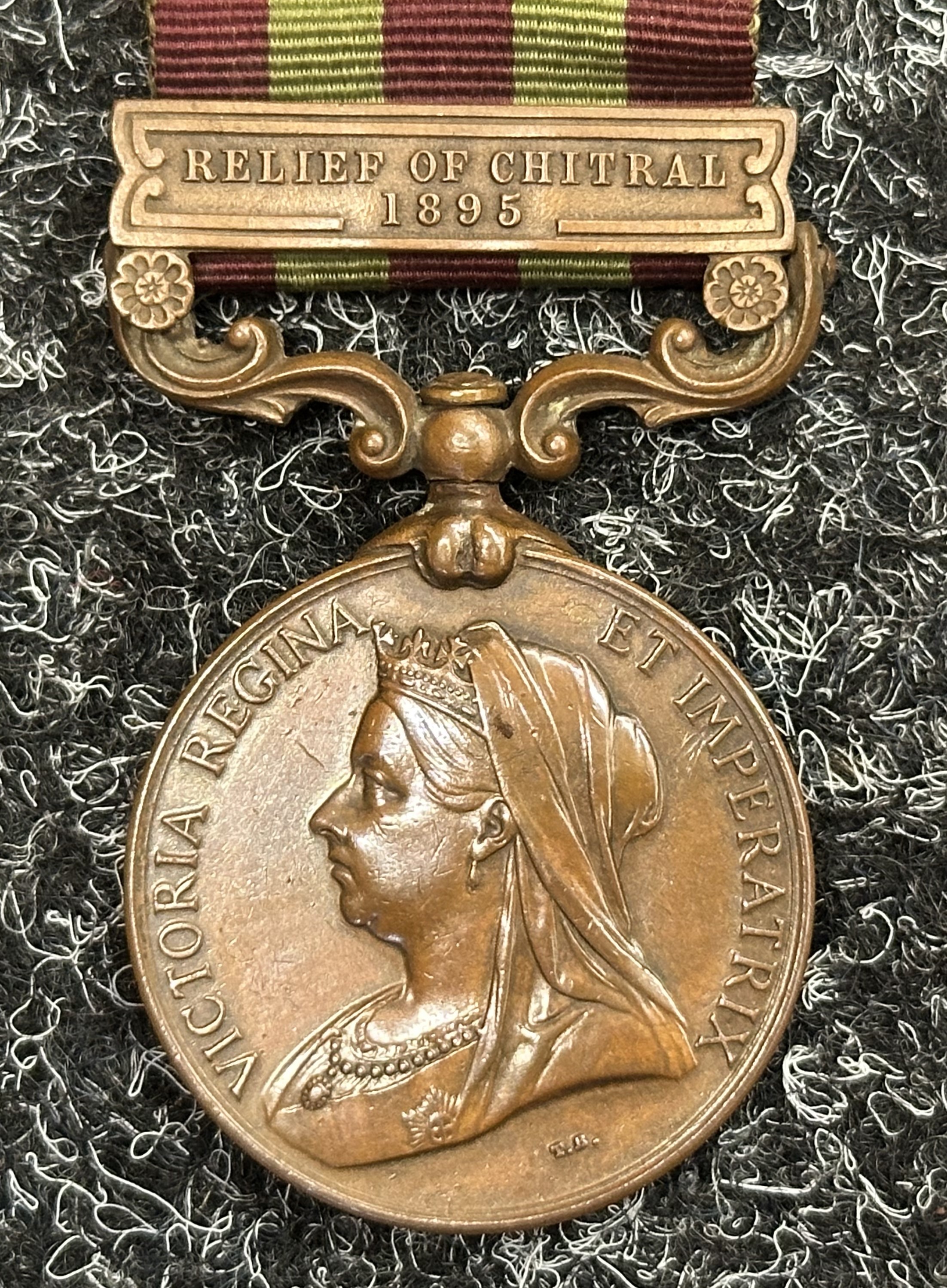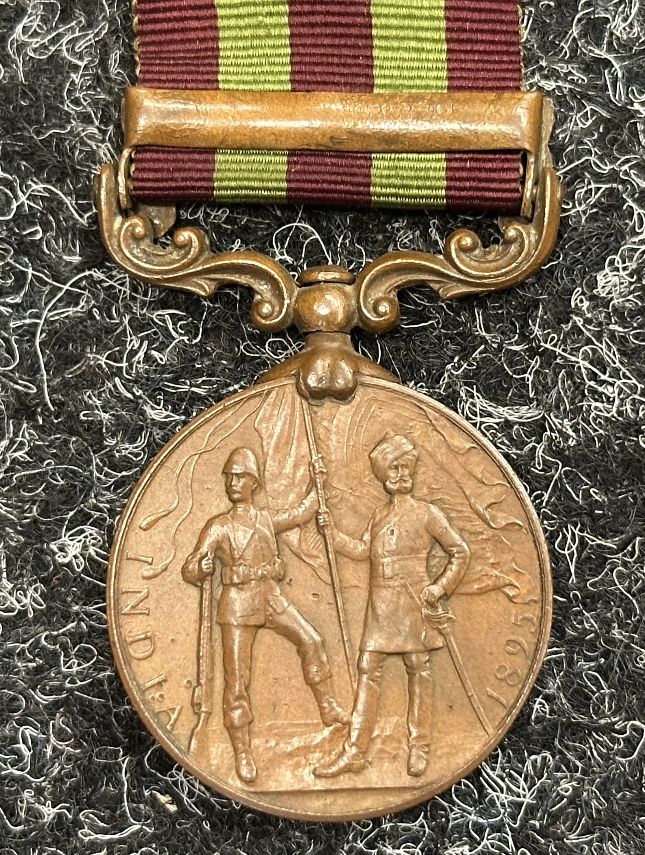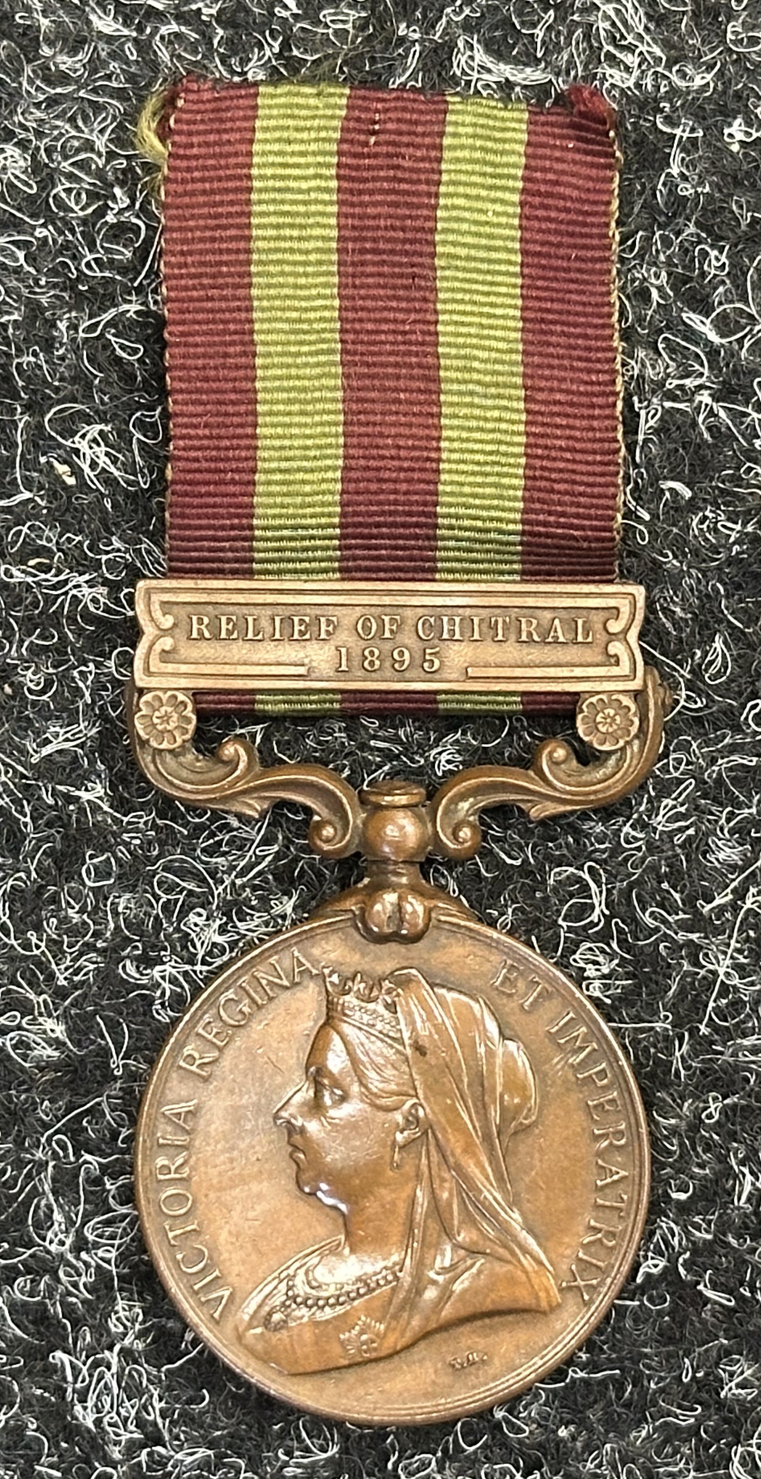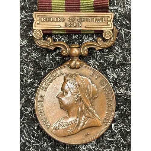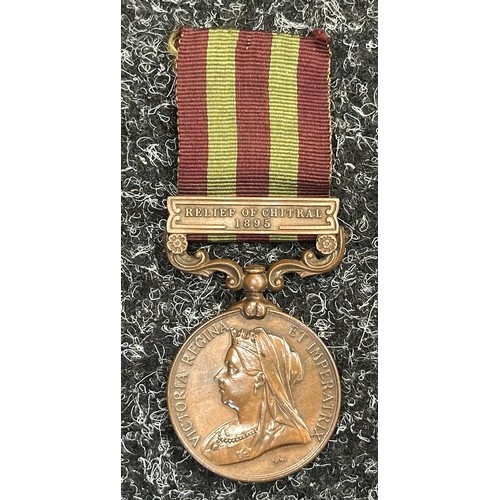 Victorian Bronze India General Service Medal with Relief of Chitral Clasp to 655 Dooly Bearer Bodalhoola Ramadoo, Comst. Transport Dept. Madras. Complete with original ribbon.