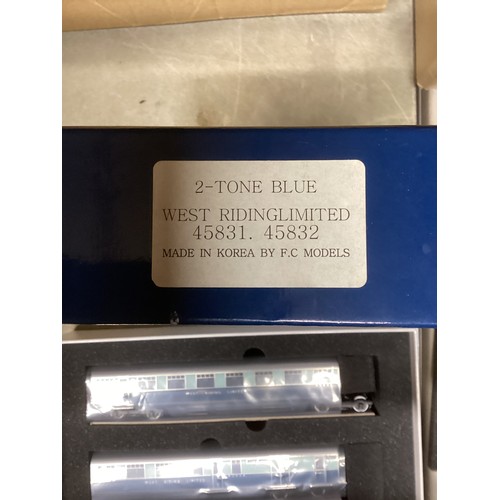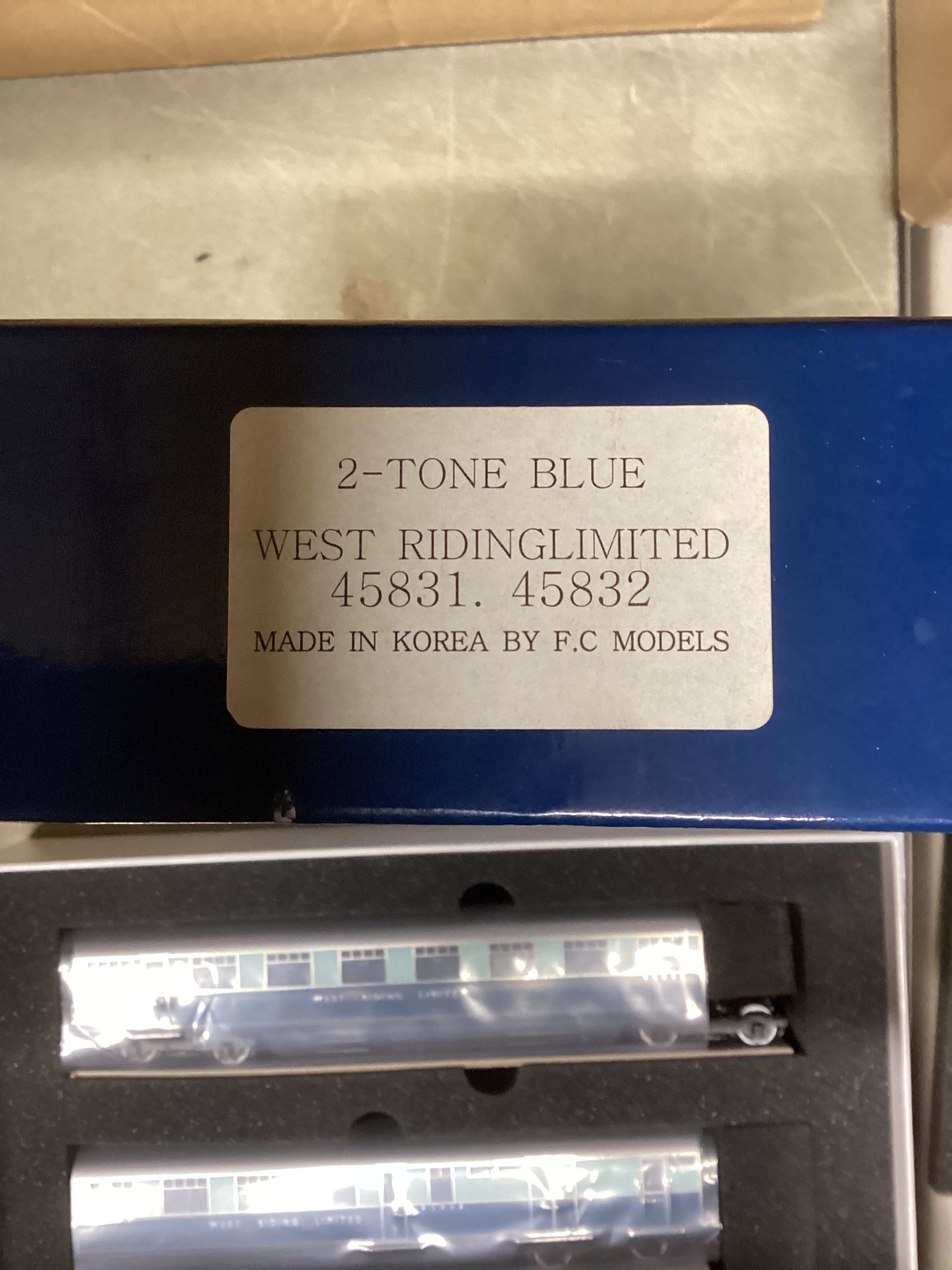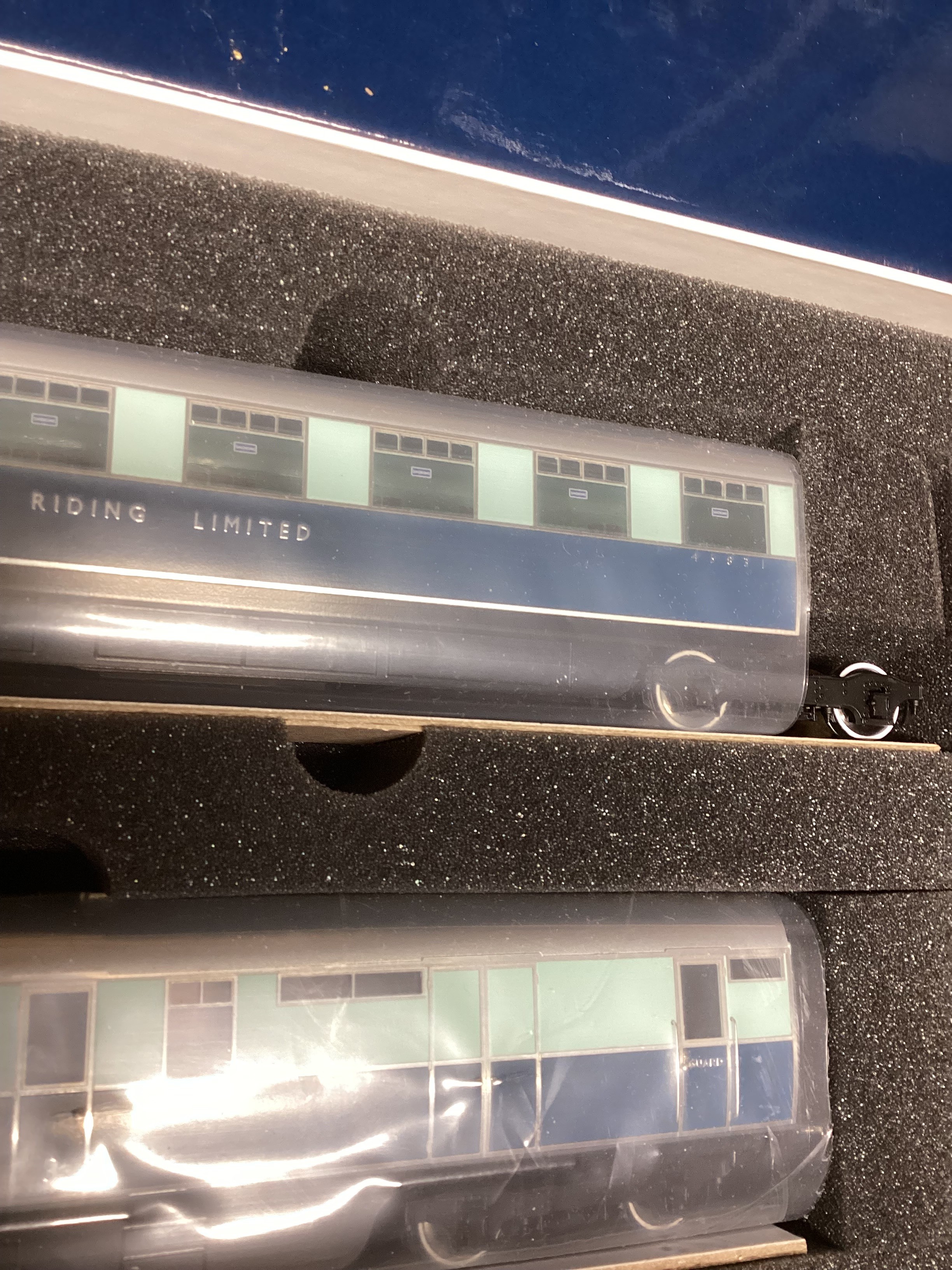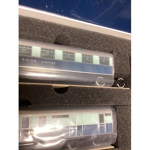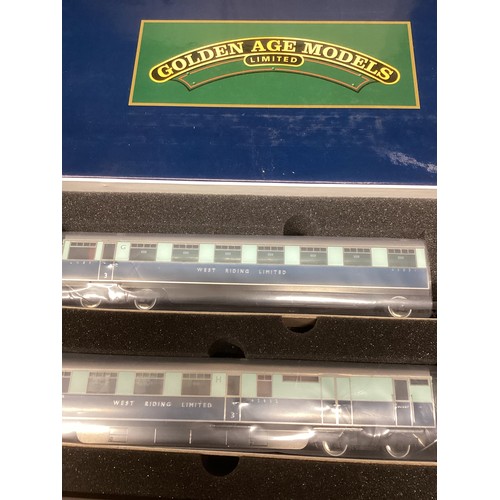 A Golden Age Models OO gauge Special carriages pair, in LNER two tone blue, West Riding Limited, 45831/45832, boxed as new.