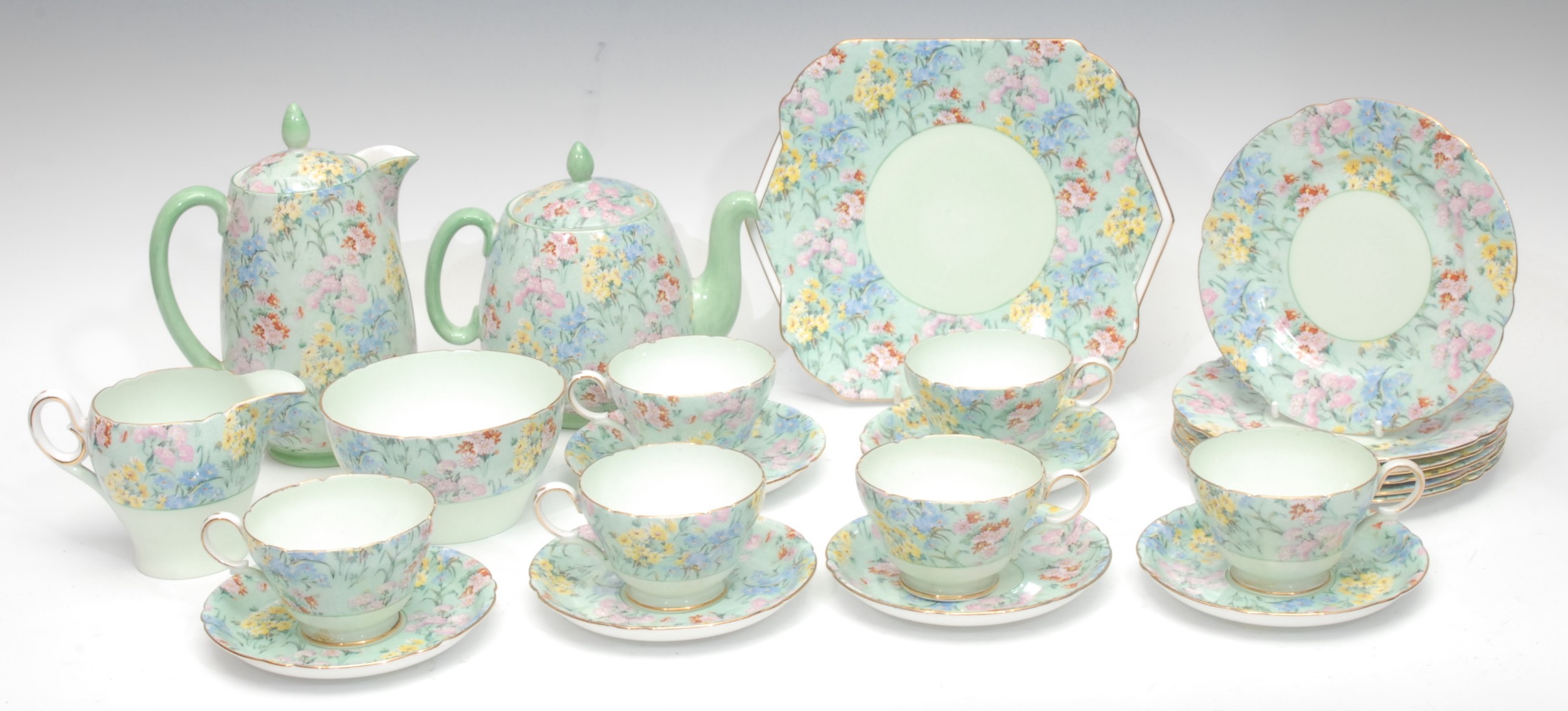 A Shelley Melody pattern tea and coffee service for six, printed with chintz blossom (qty)