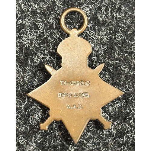 WW1 British 1914-15 Star to T4-059562 Driver F Love, Army Se...
