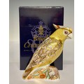 A Royal Crown Derby paperweight, Citron Cockatoo, gold stopper, 14cm, printed mark in red, boxed