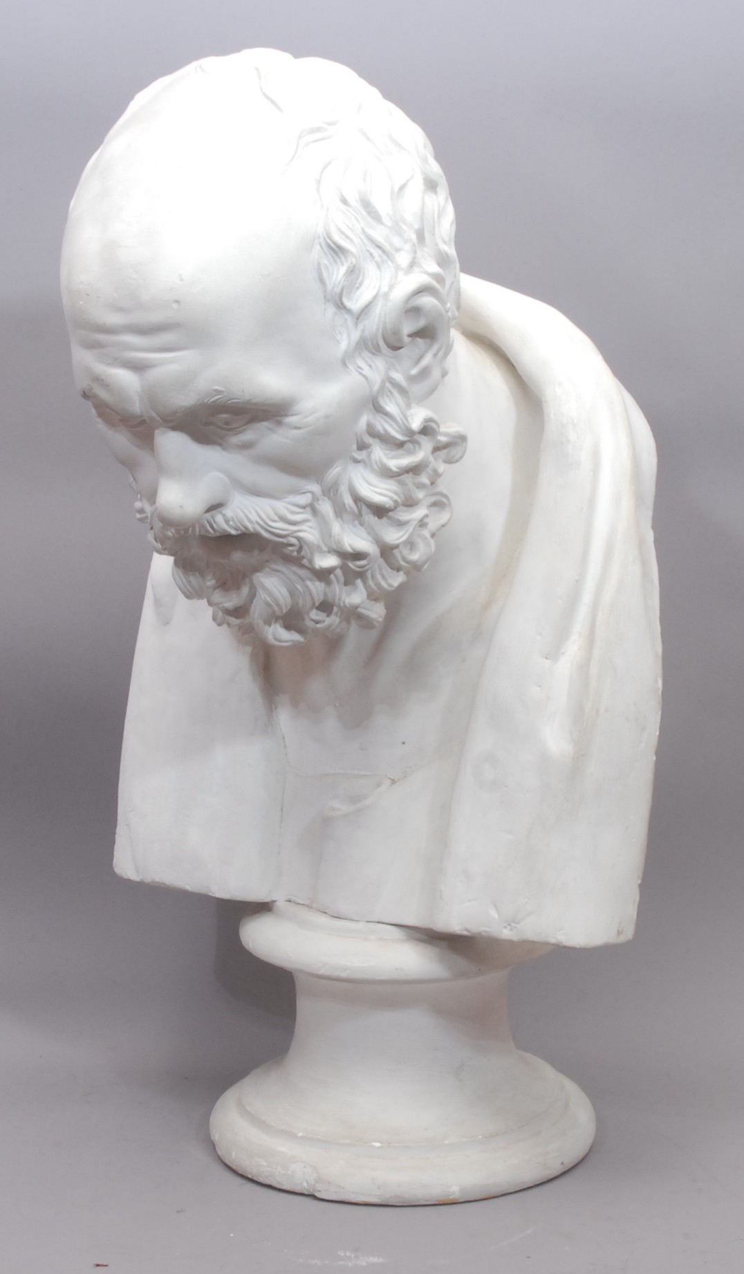 A life-size plaster bust, of Socrates (c. 470-399 BC), in the Grand Tour manner, socle base, 67cm high overall