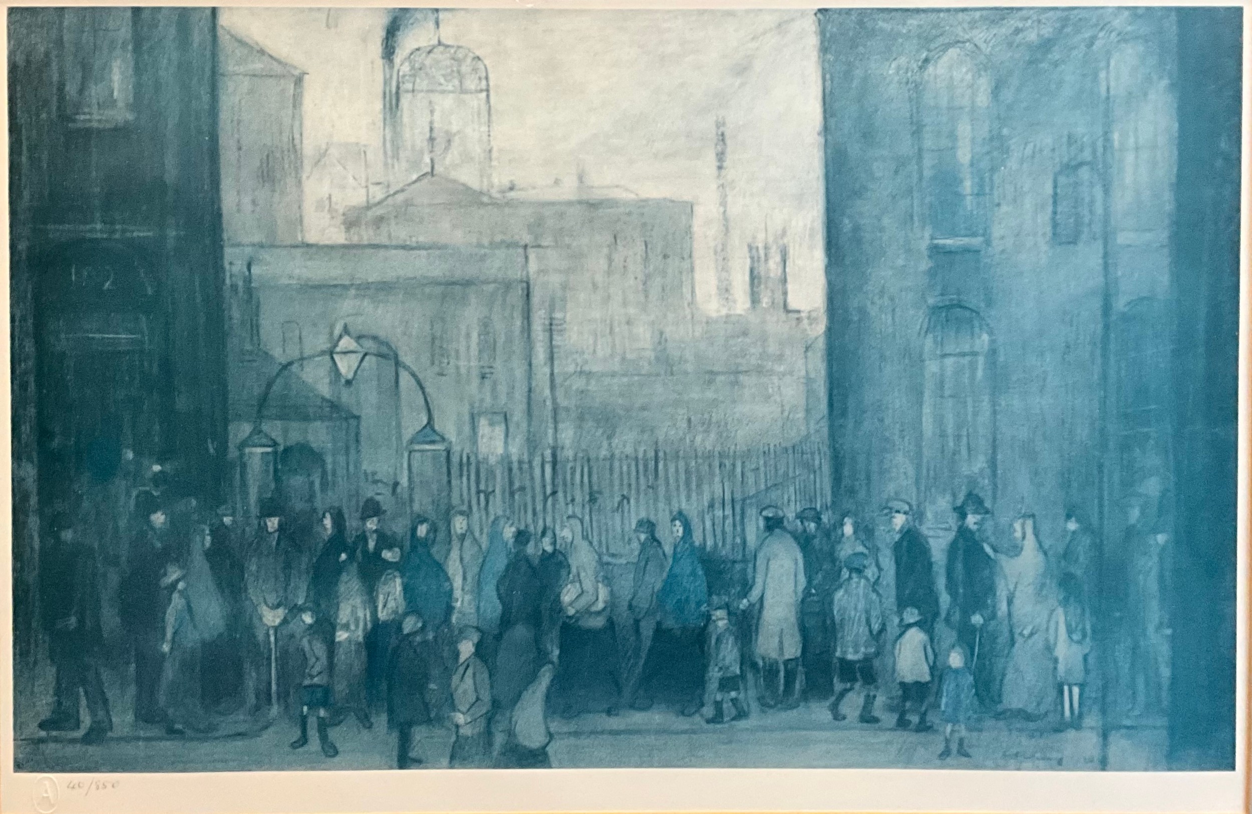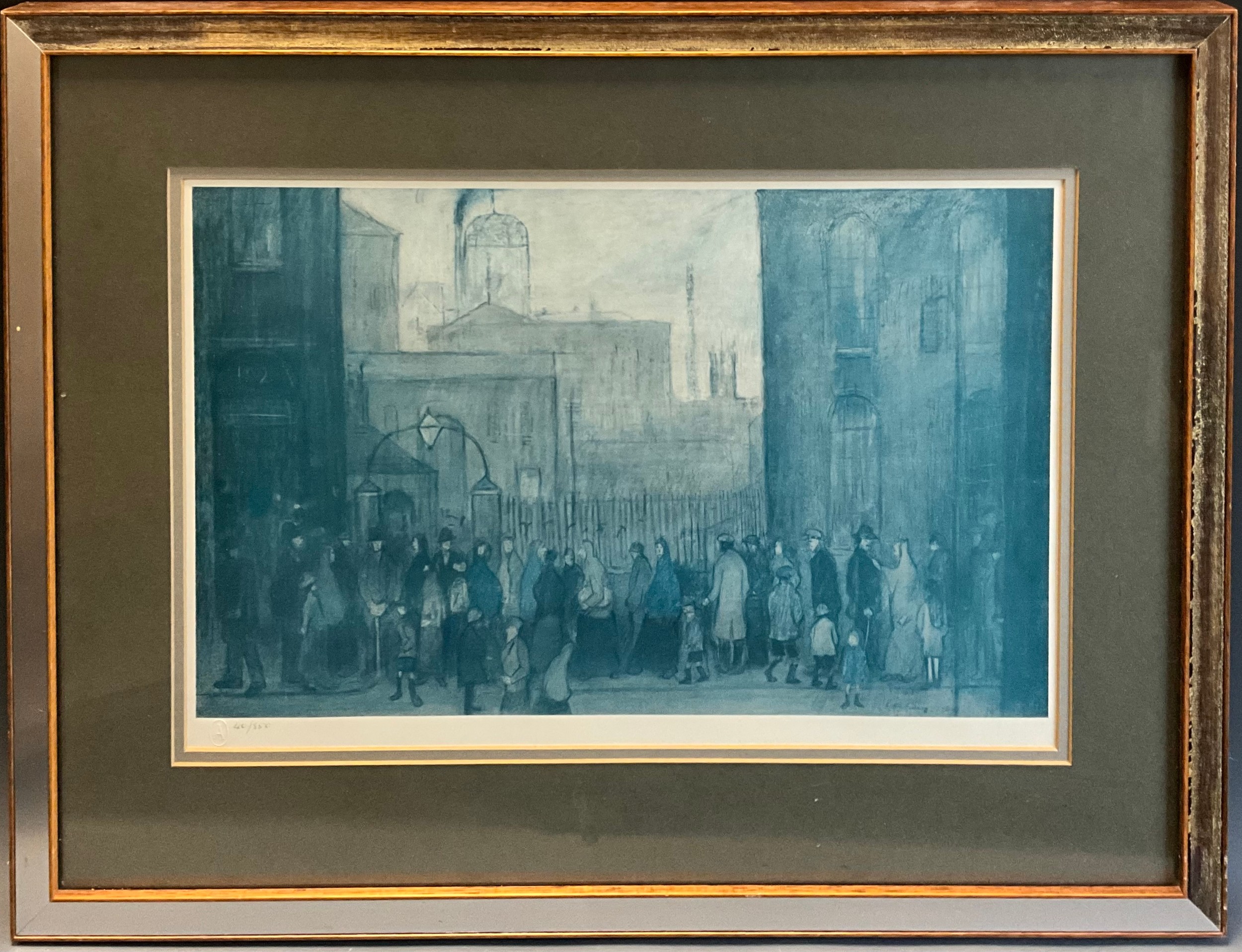 Laurence Stephen Lowry (1887-1976), by and after, Outside the Mill, 1930, numbered in pencil 40/850, and blind stamped lower left margin, lithograph, 33cm x 49.5cm (53cm x 69cm frame size).