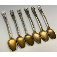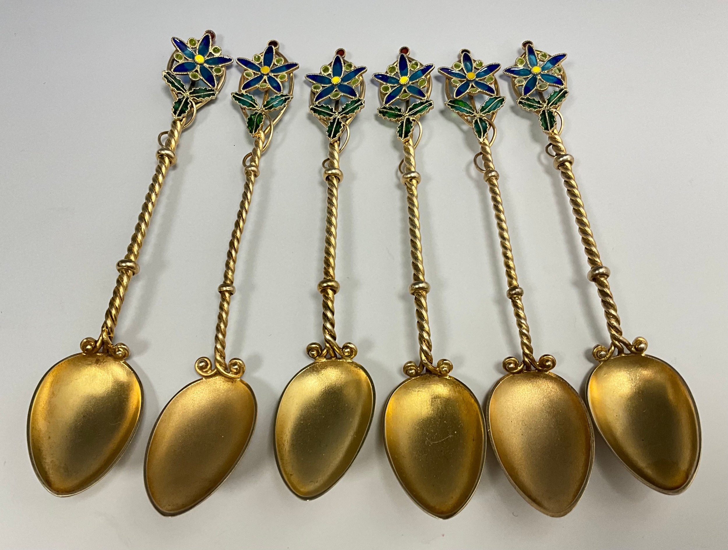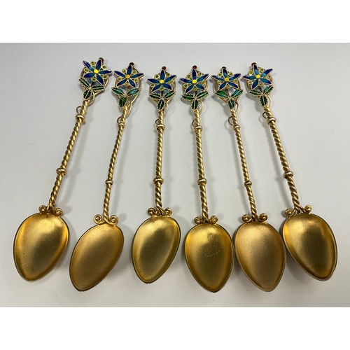 A set of six Norwegian silver and Plique-à-jour enamel tea s...