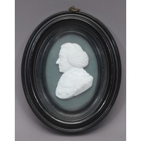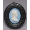 A 19th century jasperware portrait plaque, probably Wedgwood...