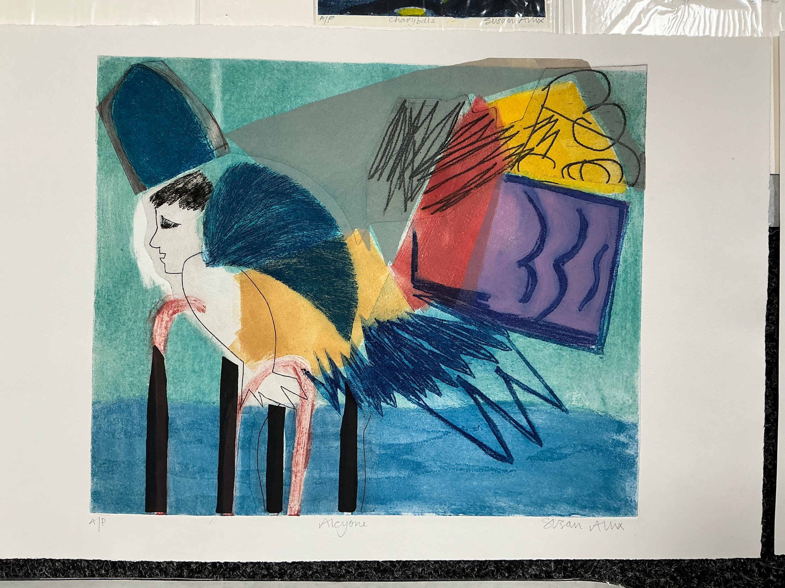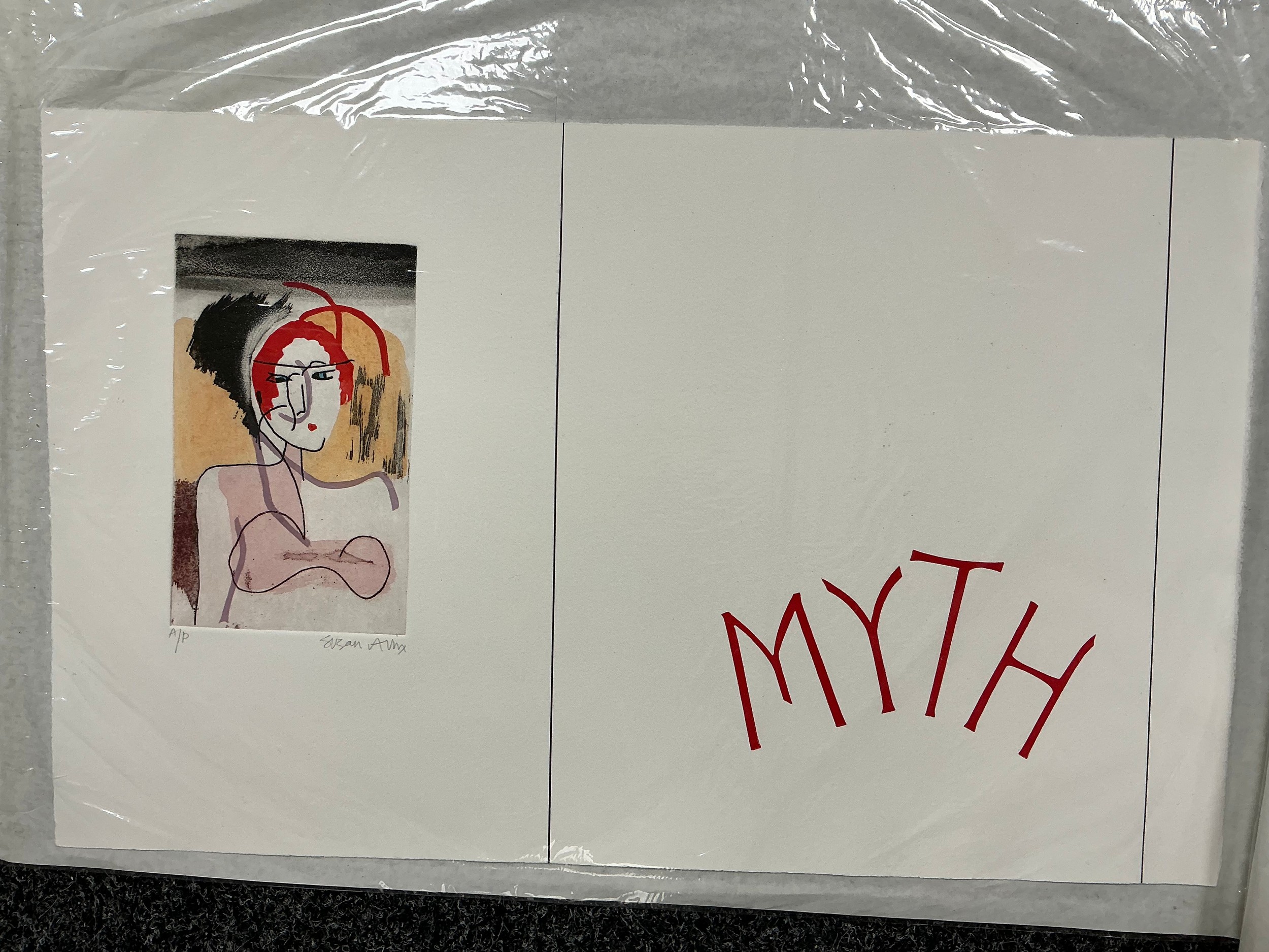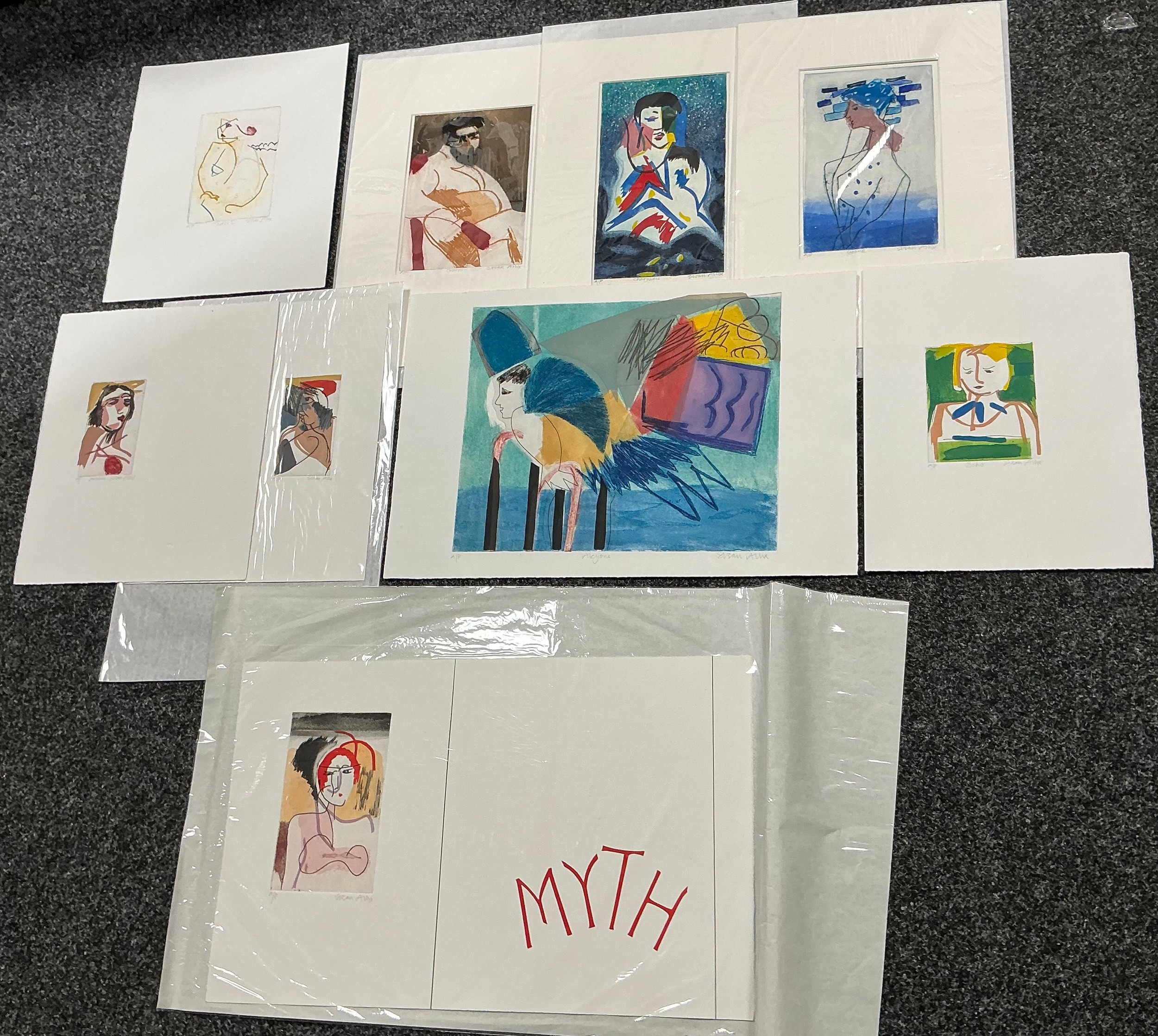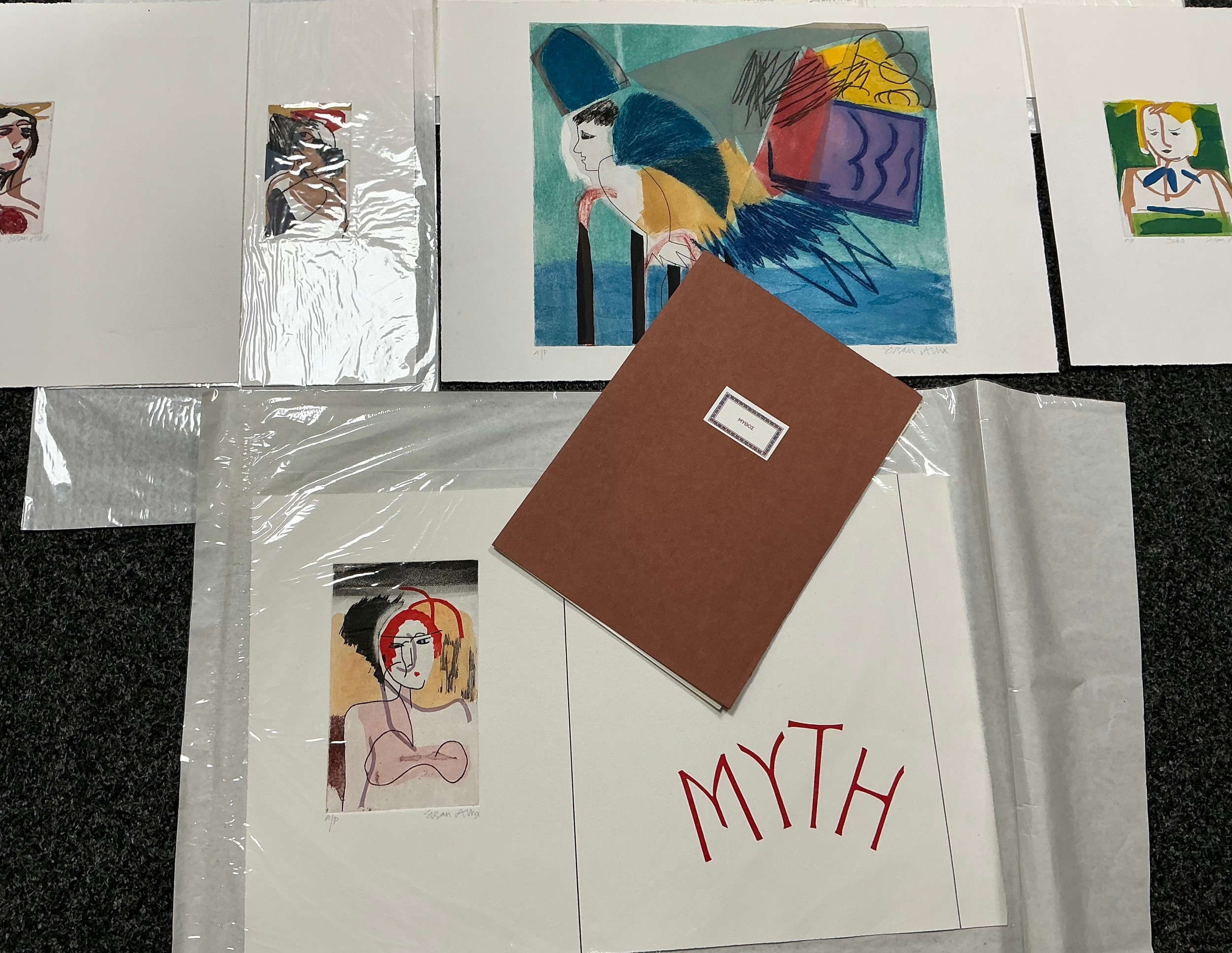 Susan Allix (British, Bn. 1943), a folio of artists proofs for Fine Press Artists, 'Myth', published in 2011 as a limited edition of 28, comprising nine individual signed prints, Cronus, Thetis, Cyane, etc, each marked "EA"; a booklet detailing the published work (10)
