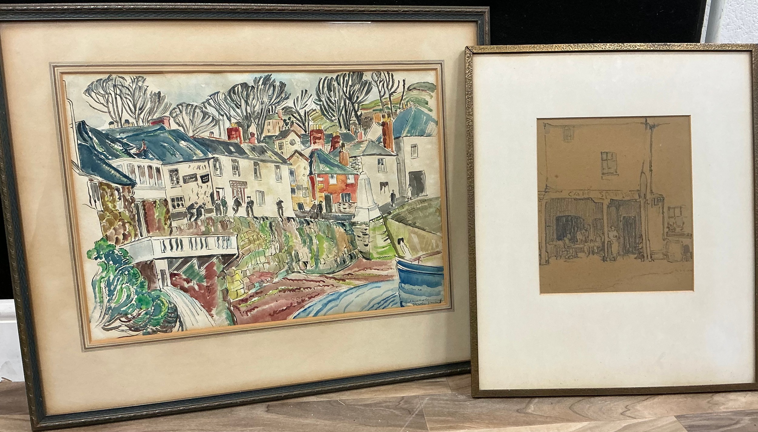 Rowley Smart, Edgar (1887-1934) Mousehole, Cornwall, signed, watercolour, 34cm x 49.5cm; A. W. Nixon, pastel, (2).