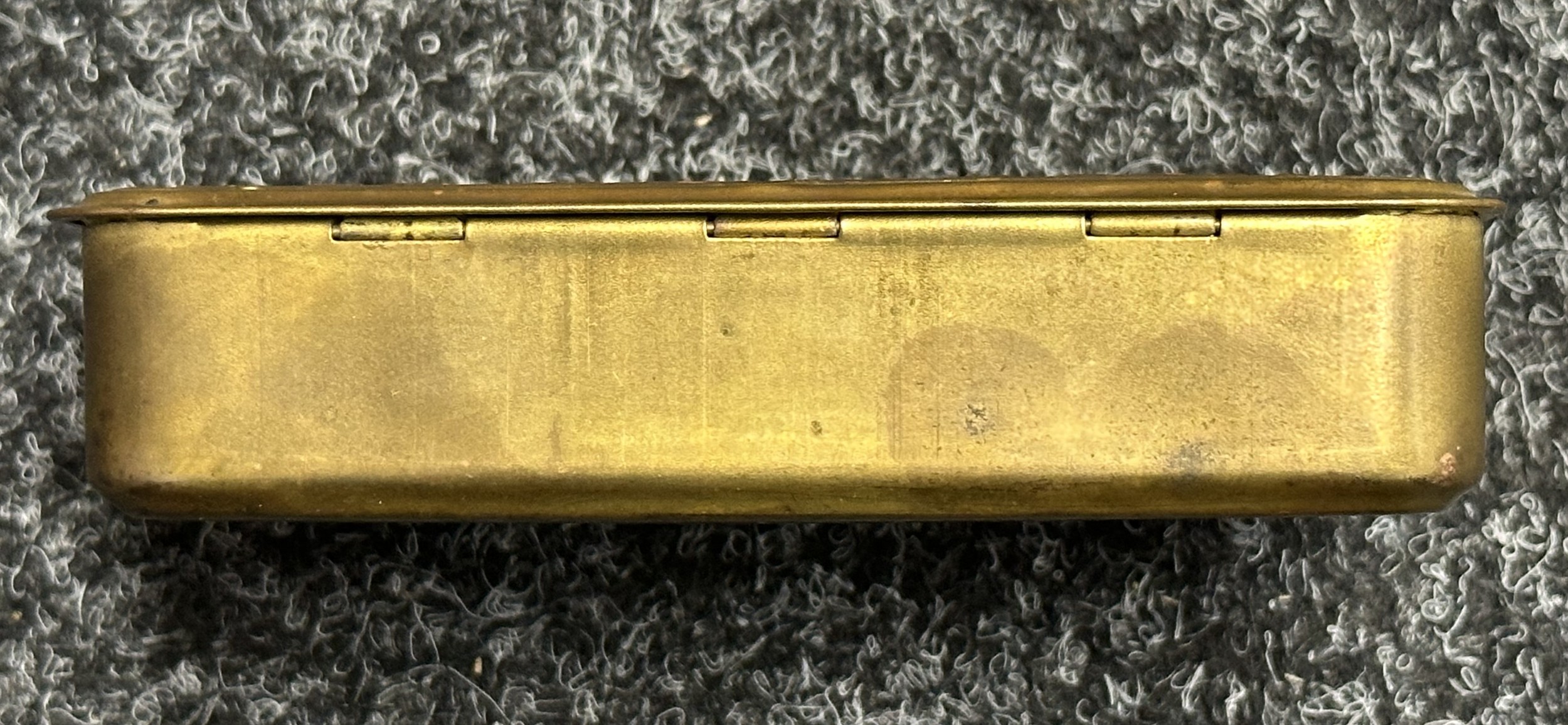 Good condition to all items. Hinge to tin is good and no splits to side.