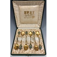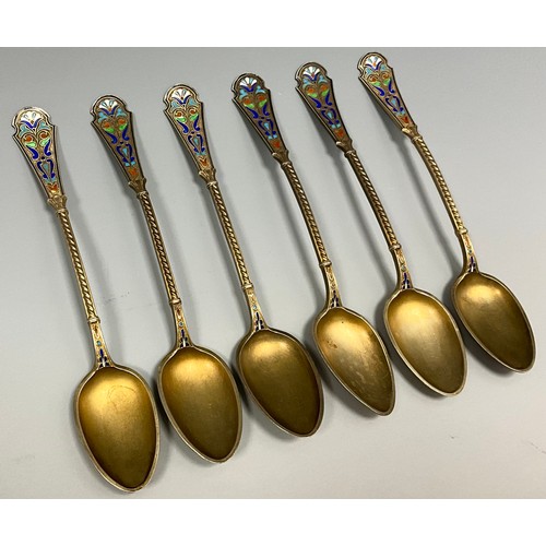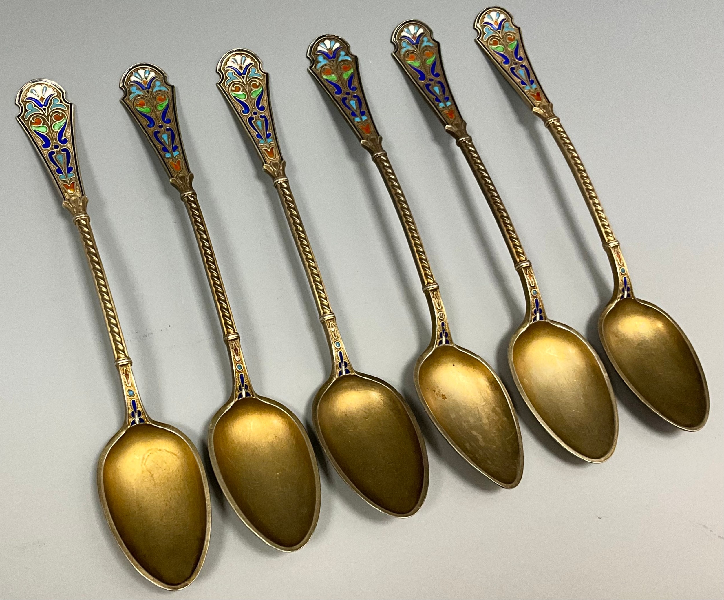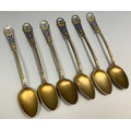 A set of Six David Anderson enamelled silver tea spoons, 68....