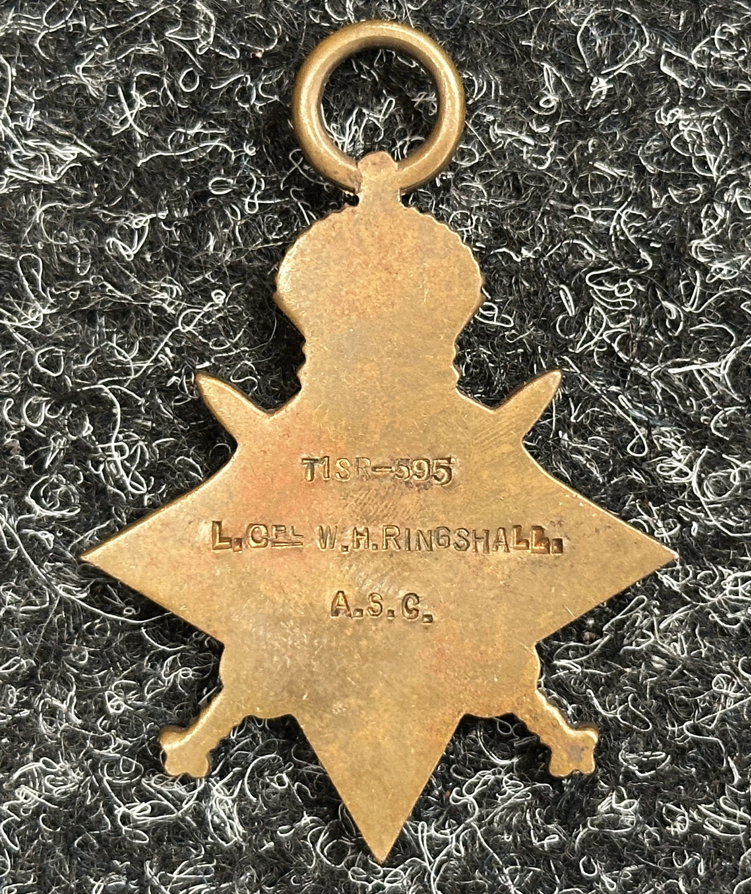 WW1 British 1914-15 Star to T1SR-595, Lance Corporal WH Ringshall, Army Service Corps. No ribbon.