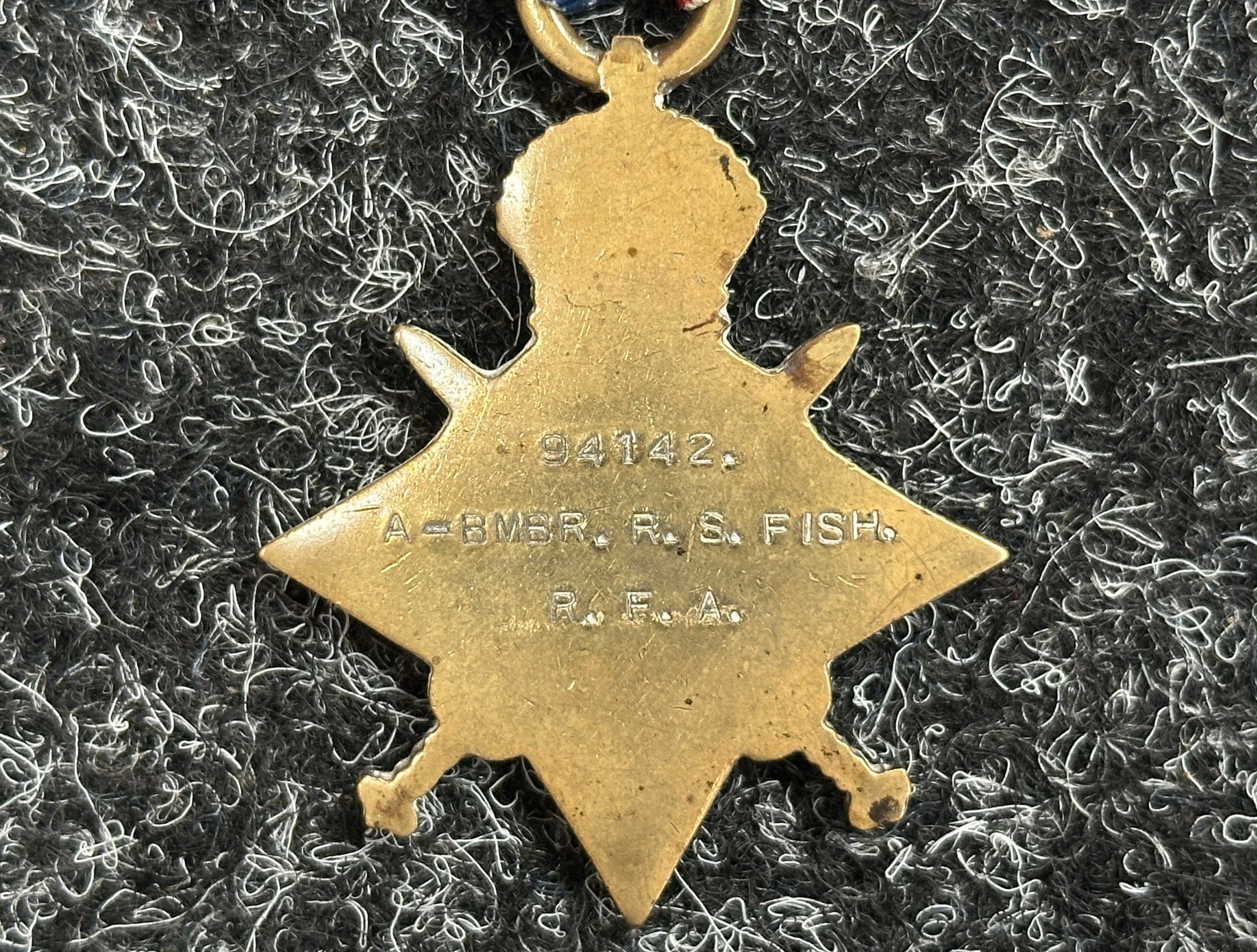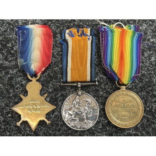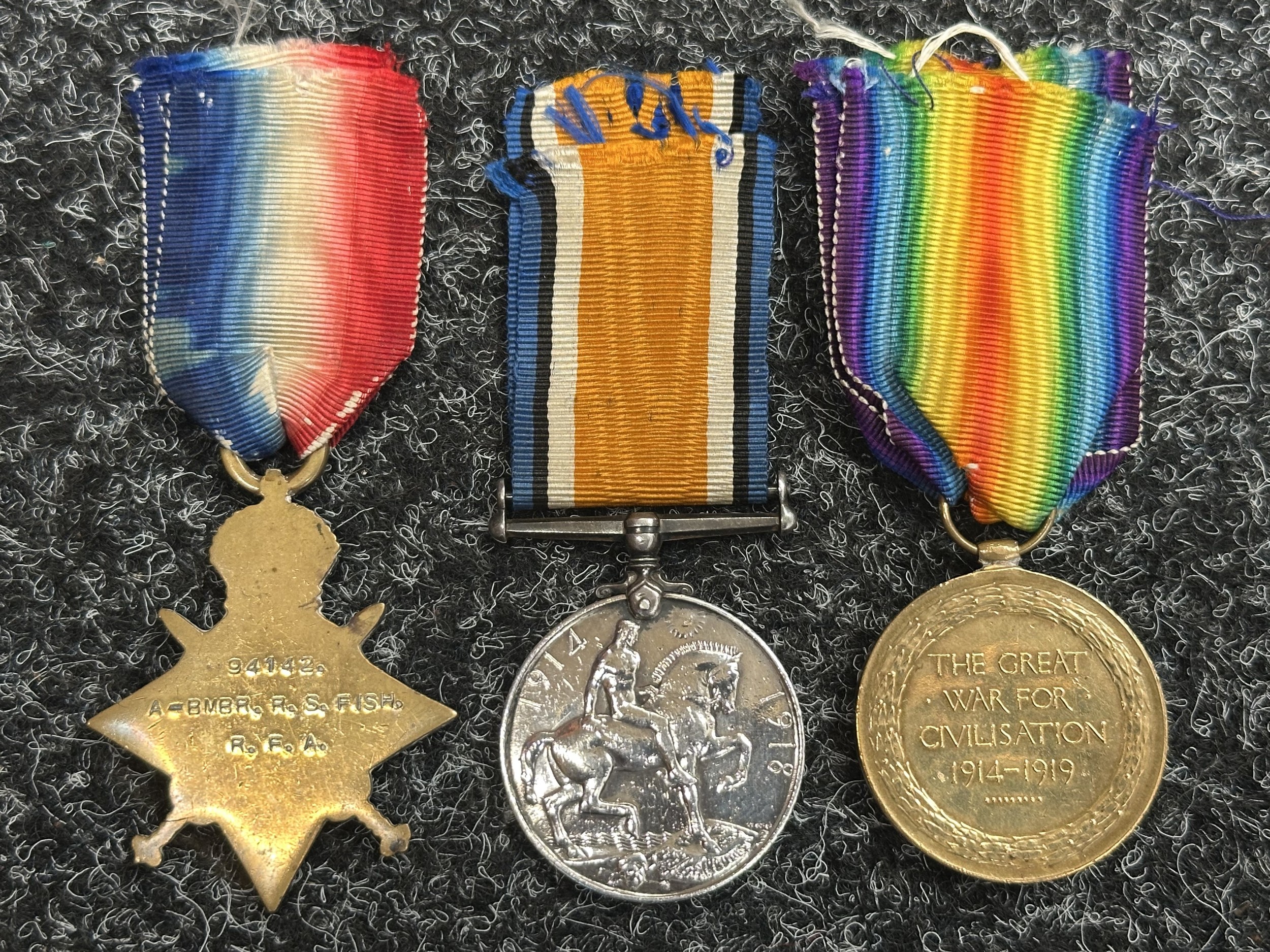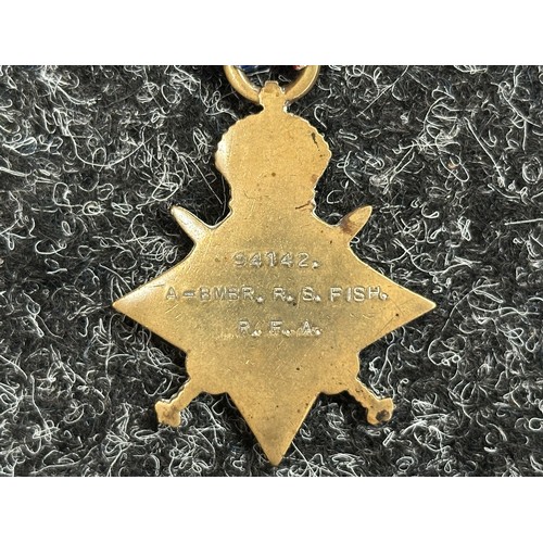 WW1 British Medal group to 94142 Acting Bombardier RS Fish, Royal Field Artillery comprising of 1914-15 Star, War Medal and Victory Medal. Complete with original ribbons.