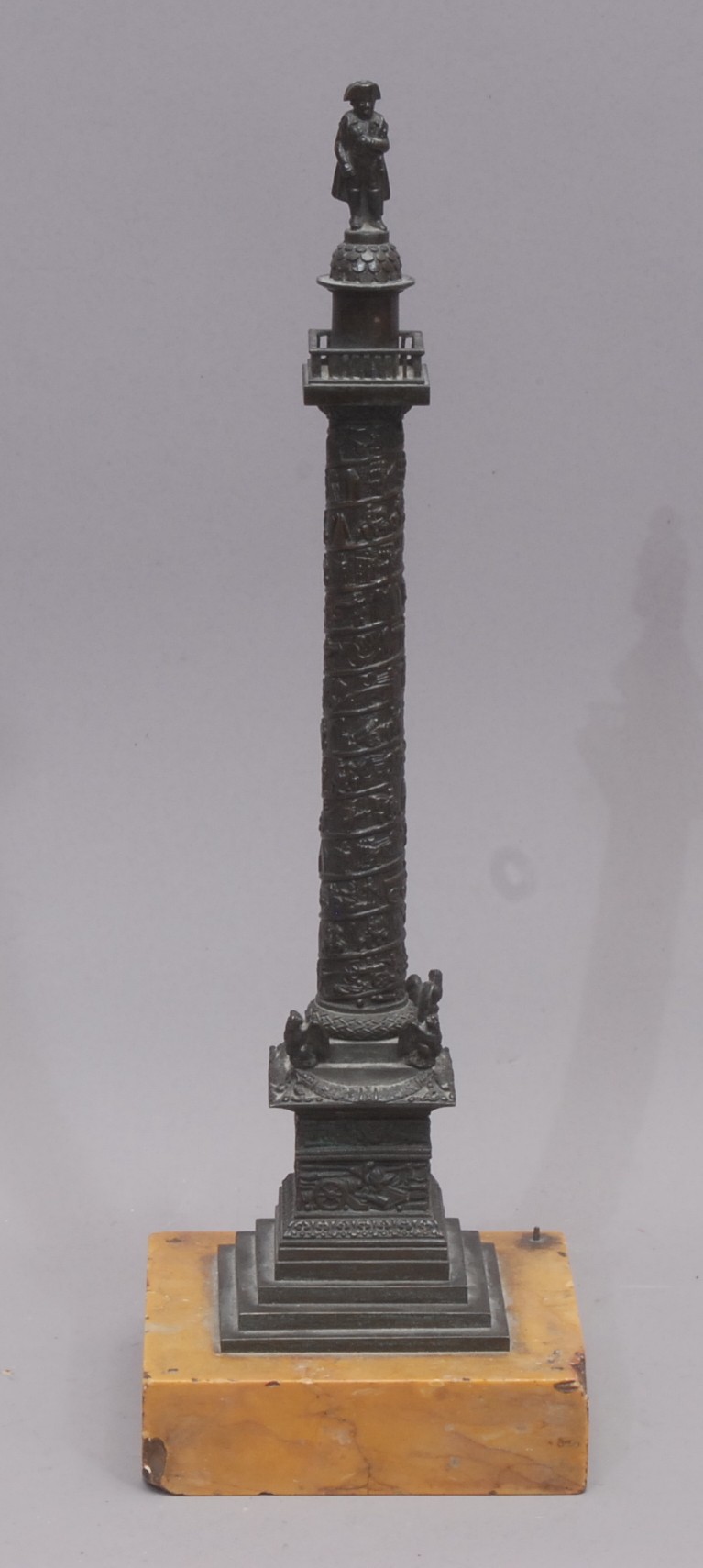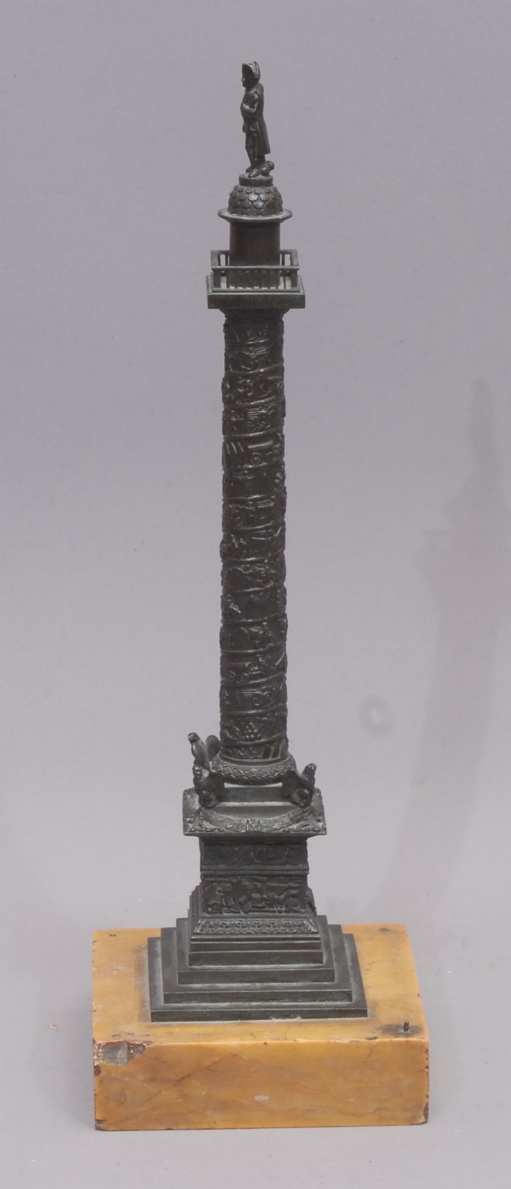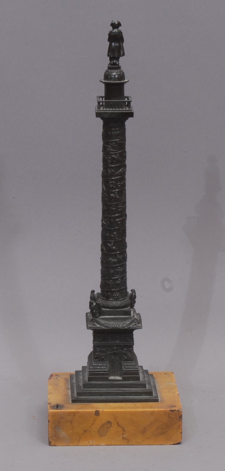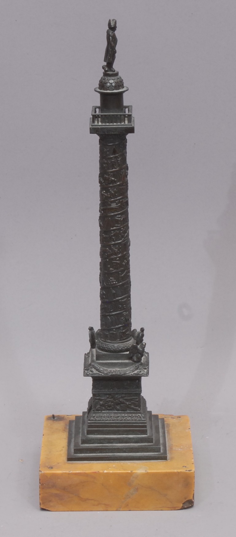 A 19th century Grand Tour dark patinated bronze library Vendome Column, Paris, Sienna marble base, 28cm high